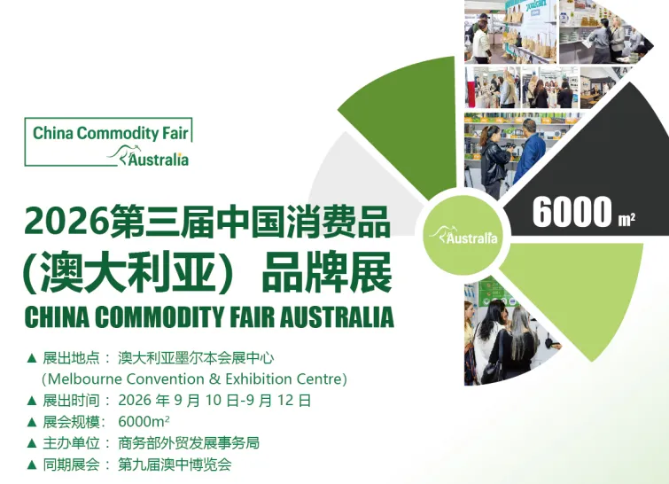 第三届中国消费品(澳大利亚)品牌展将于2026年9月10日至12日在墨尔本会展中心盛大举行,汇聚家居、电子、婴童等多元展品,助力中澳贸易合作深化。