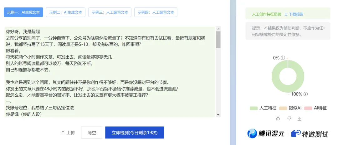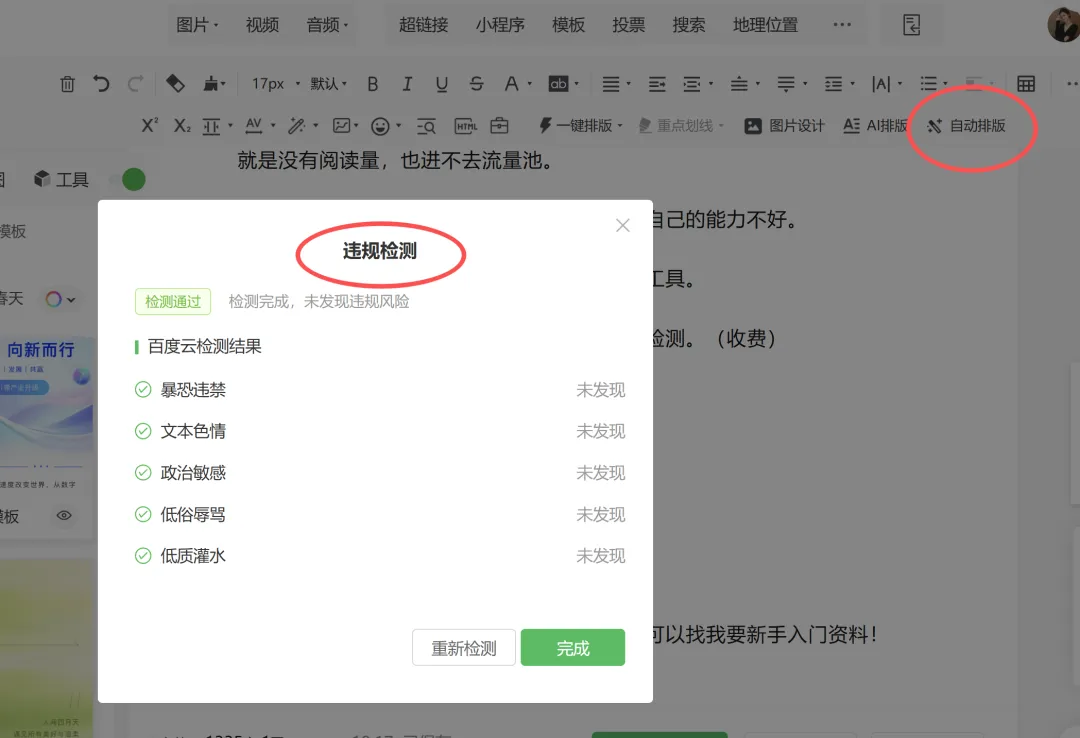 情绪价值 + 干货价值对读者来说都非常需要, 内容要有生命力。有些时候我们明明很细心很努力写文章了,也不停地删改错词和语病,可就是没有阅读量,也进不去流量池。这个时候,千万不要怀疑是不是自己文笔、自己的能力不好,可以先自查这些问题,分享我最常用的工具:壹伴插件:主要用来排版、检测错别字和违规检测。(收费)人工原创的作品,只要坚持写,都会慢慢进入平台的流量池的。关注我的公众号,下一期分享(从 0 到 1 打造企业融资公众号,2招野路子拓客技巧或许你用的上)你们如果也准备写公众号了,可以评论区留言(新手)领取0-1入门起号流程资料!
