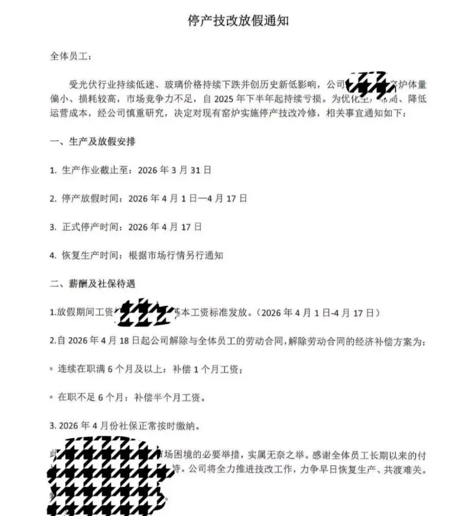 近日,一则关于“某知名光伏工厂停产、员工全员解散”的消息在社交媒体上引发广泛关注。据知情人士爆料,受全球光伏市场需求波动及行业产能过剩影响,该企业已决定于4月18日起正式停产放假,并与全员解除劳动合同。