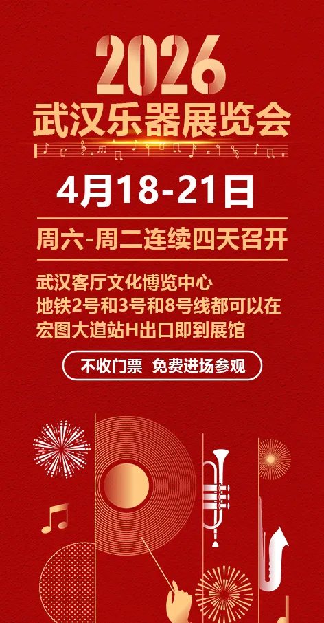 ? 4月18日—21日,?武汉客厅中国文化博览中心,2026第十二届武汉国际乐器展暨第十届武汉舞台服饰舞蹈用品博览会即将盛大开幕!为期四天的展会,中西乐器荟萃、数万款舞服华美登场,为全城音乐爱好者、舞者及市民奉上一场视听盛宴,错过等一年!