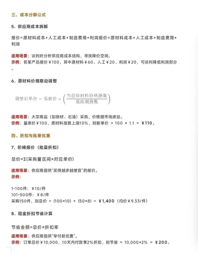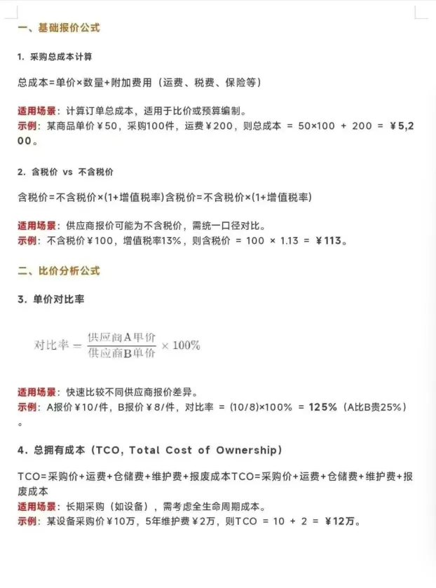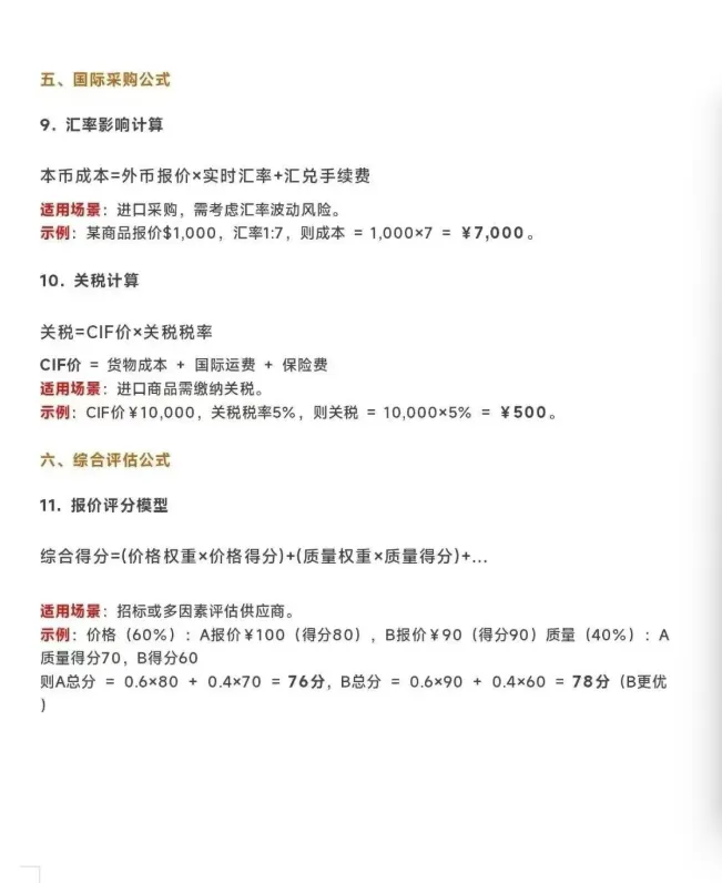 整理了一些采购报价会用到的公式希望可以帮助到有需要的朋友们