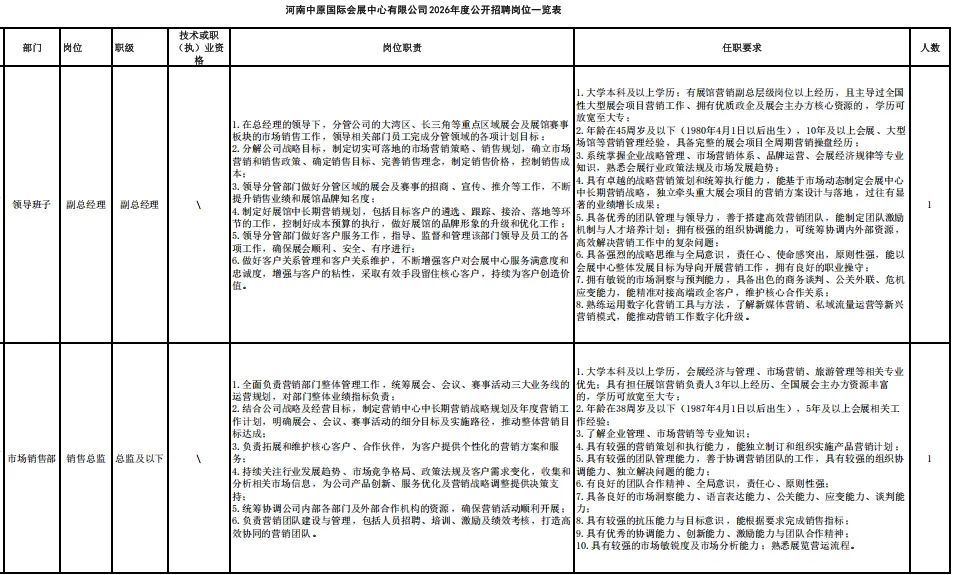 附件:河南中原国际会展中心有限公司2026年度公开招聘岗位一览表.pdf