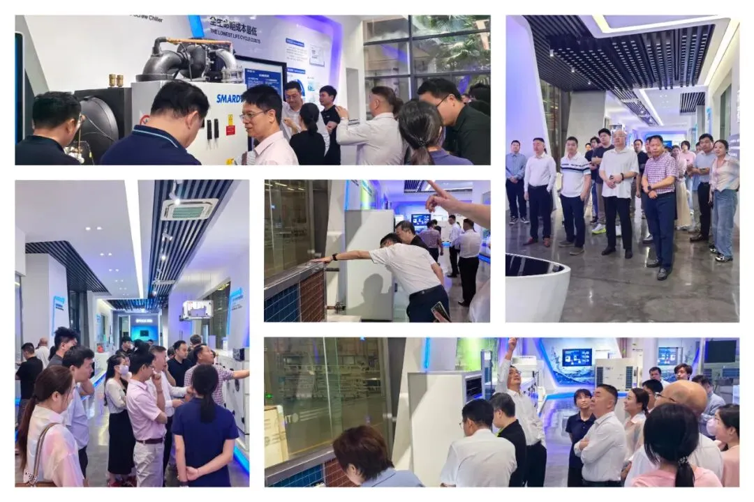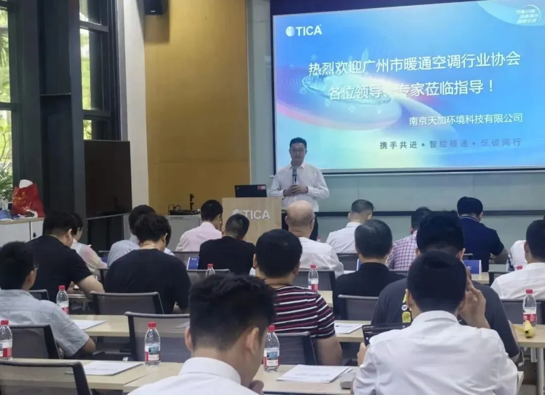 随后,大家走进天加空调。这家始创于1991年的企业,是集研发、制造、销售、服务于一体的洁净环境及热能利用专业化企业,更是国家高新技术企业与中国制冷空调工业协会副理事长单位。现场,天加高管团队详细分享发展历程,从“一个环保路径,两个事业板块”的战略布局,到空气处理机组连续多年全国市占率第一的硬核实力,再到微电子、医院手术室、生物制药等洁净领域超40%的市场份额,以及服务全国近60条地铁线、数千家医院与半导体工厂的标杆案例,全方位展现企业实力。