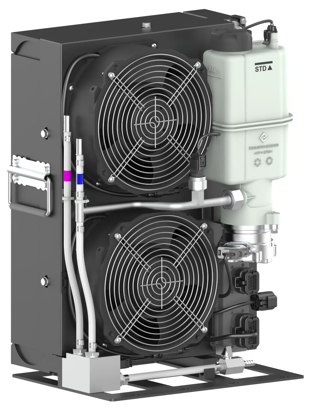 • 性能优势:额定制冷量>5kW,额定制热量>2kW;支持-35°C~55°C宽温区运行,实时监测温度、液位与压力,实现高效动态控制