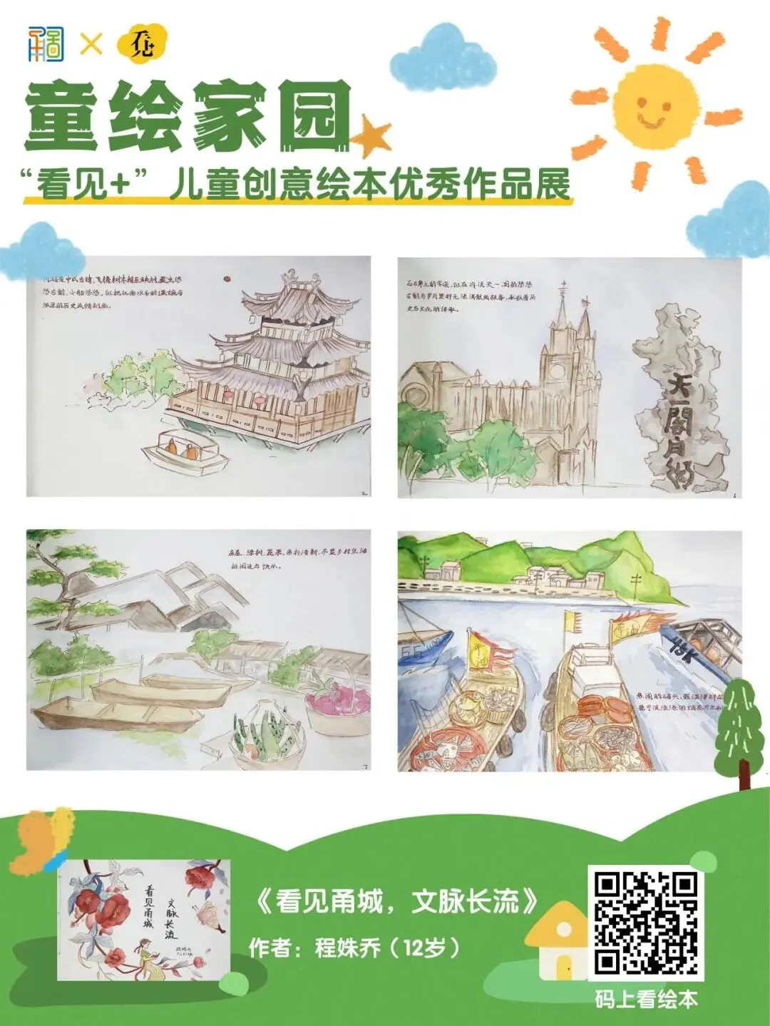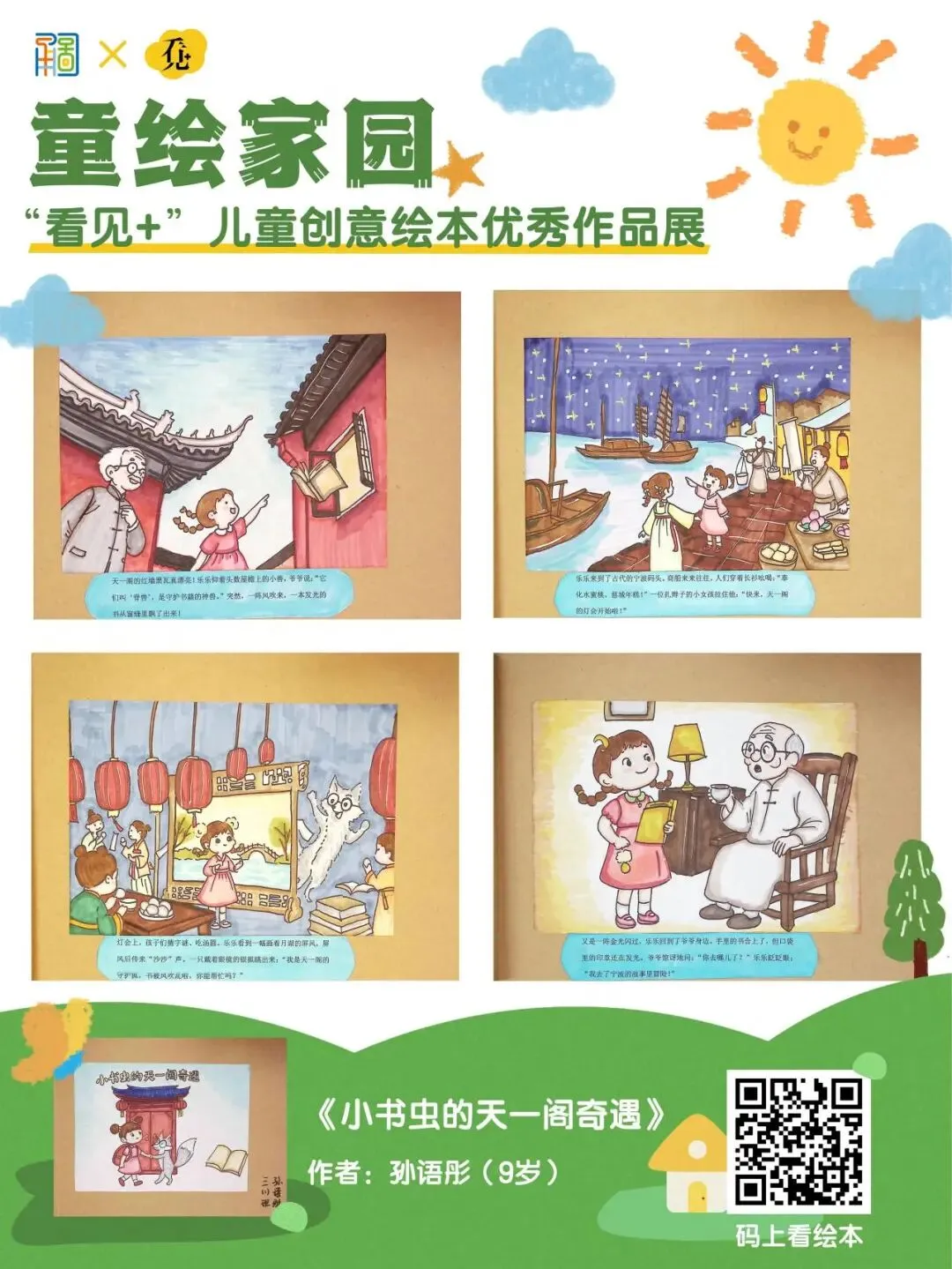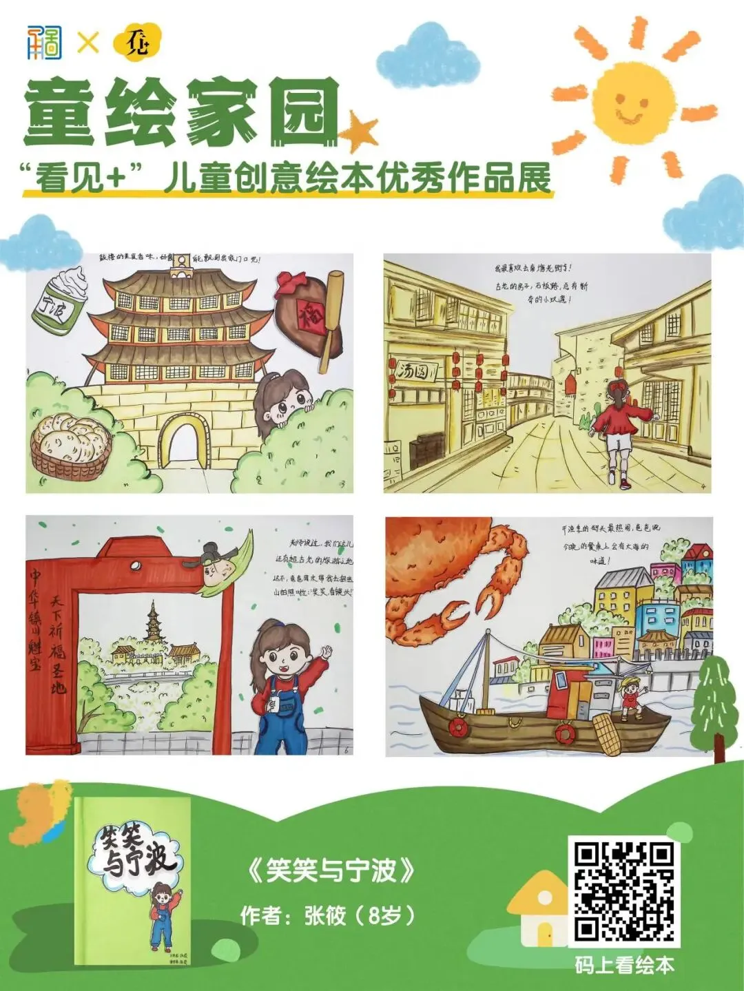 “童绘家园‘看见+’儿童创意绘本优秀作品展”汇集了2025年宁波市“看见+”儿童创意绘本大赛中的获奖佳作,经过专业评审从原创性、艺术表达、叙事逻辑与情感深度等多维度的综合评选,最终共有45组作品脱颖而出。这些绘本以童真视角与斑斓笔触,讲述属于这座城市、每一扇窗后的“家园记忆”。