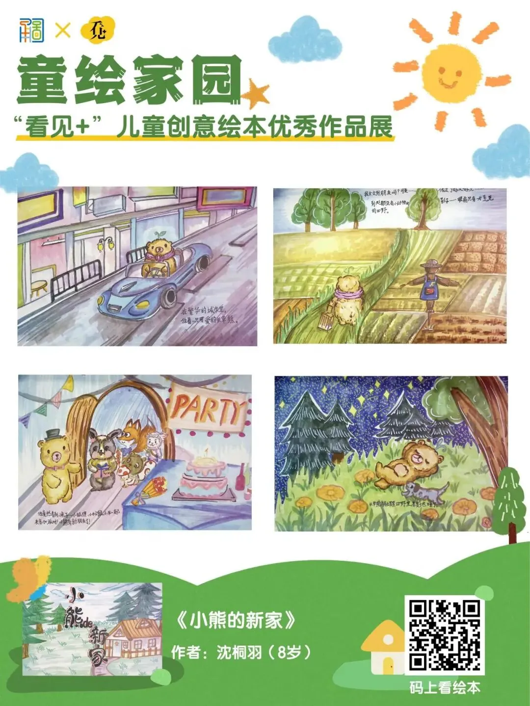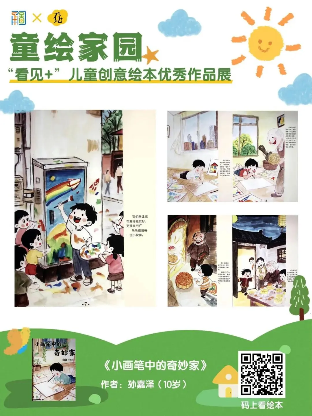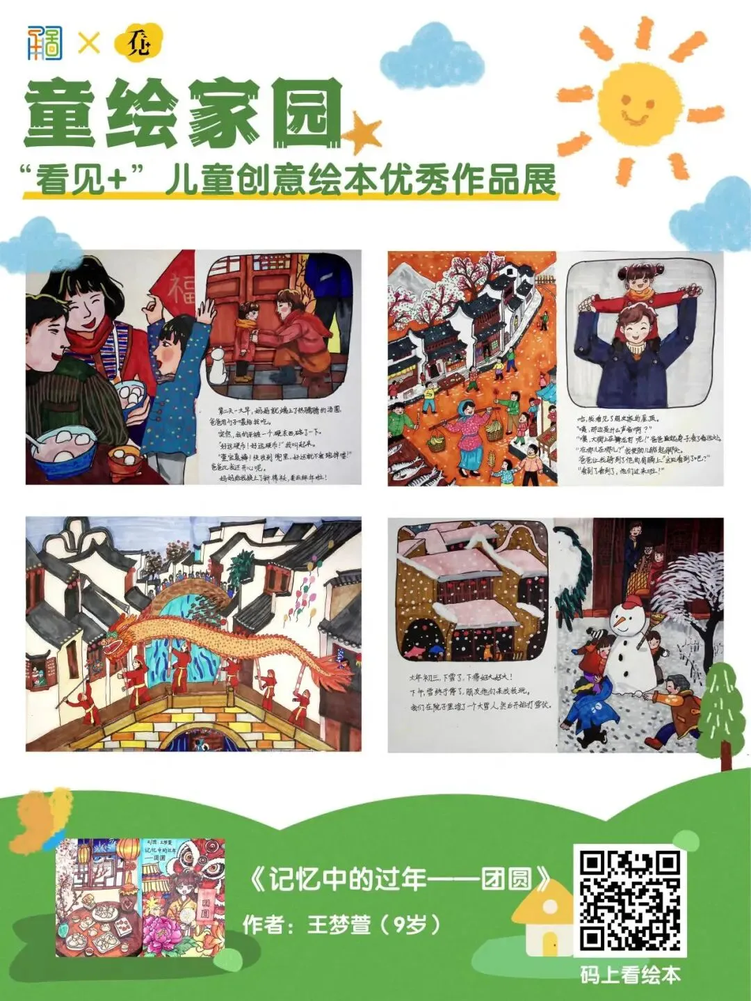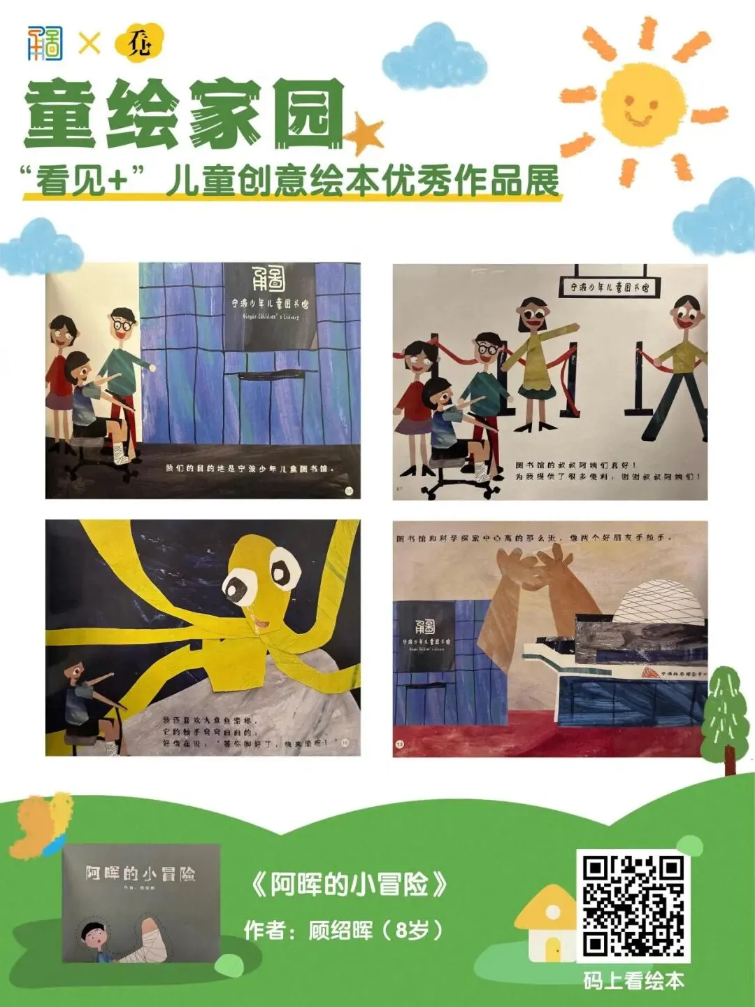 “童绘家园‘看见+’儿童创意绘本优秀作品展”汇集了2025年宁波市“看见+”儿童创意绘本大赛中的获奖佳作,经过专业评审从原创性、艺术表达、叙事逻辑与情感深度等多维度的综合评选,最终共有45组作品脱颖而出。这些绘本以童真视角与斑斓笔触,讲述属于这座城市、每一扇窗后的“家园记忆”。