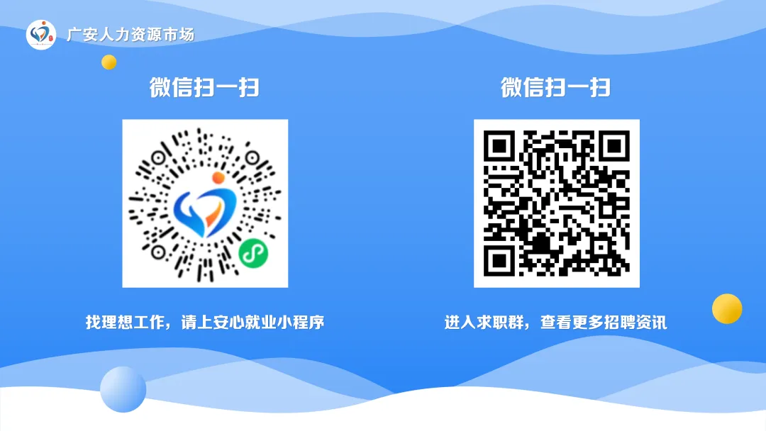 温馨提示:以上招聘信息具有时效性,具体招聘情况请提前电话联系,最终解释权归广安人力资源市场。