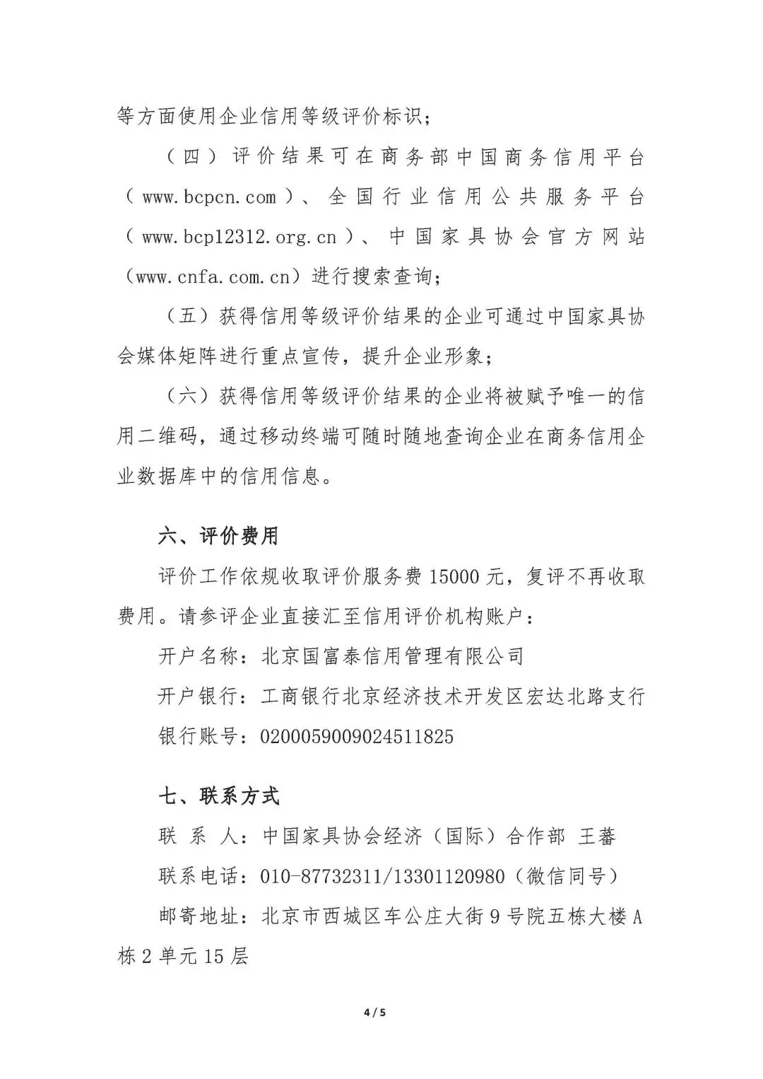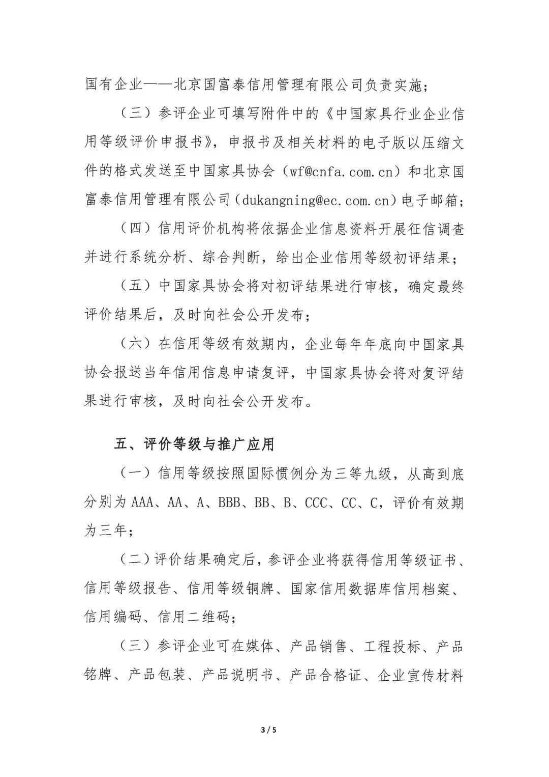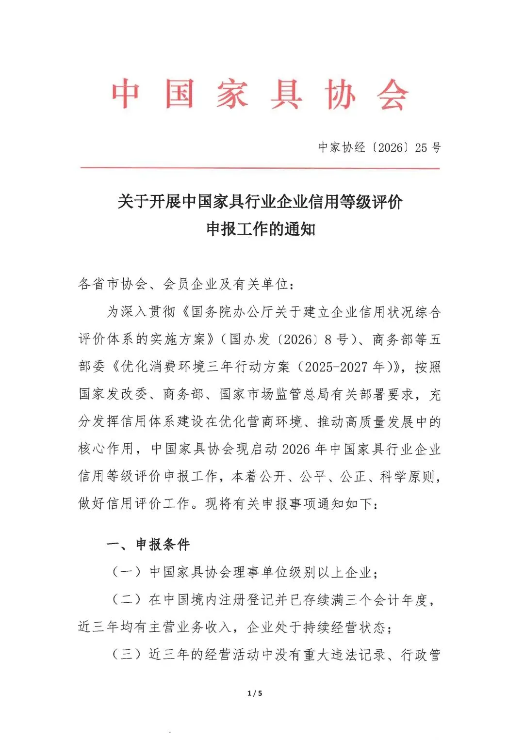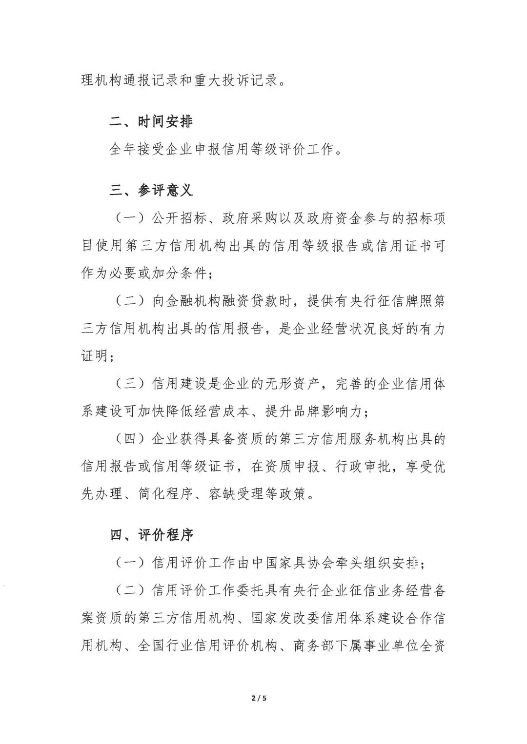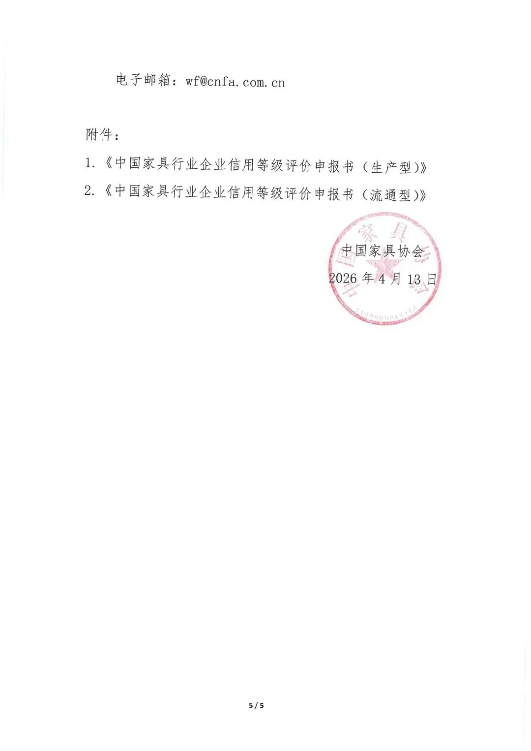 关于开展中国家具行业企业信用等级评价申报工作的通知