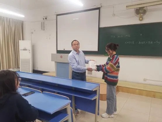 汤有贤老师为中国注册会计师、资产评估师、注册税务师、英国特许管理会计师、中国科学院大学经济与管理学院企业导师,具备6年德勤华永国际“四大”会计师事务所审计工作经验,在金风科技集团(“A+H”上市公司)担任财务总监7年,在“人工智能+集成电路”硬科技领域创业公司从事资本运营5年,主要讲解业务流程层面的内部控制,结合其深厚的实践经验,运用案例教学深入浅出,使学生能够零距离接触企业内部控制实践的真实做法,获得一线经验。汤总监还向2020级财务管理专业学生赠送10册稻盛和夫的《干法》一书,以帮助学生了解更多经典管理思想。