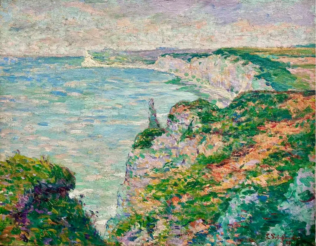 古斯塔夫·洛伊索(Gustave Loiseau, 1865-1935) 与科基奥同年出生,是一位被低估的后印象派风景画家。洛伊索可被视为“梵高时代绘画实验的延续者,他的技法“格栅笔法”(en treillis)——以交叉网格状笔触捕捉光影——融合了印象派对自然的直接观察与现代绘画对形式结构的追求。洛伊索曾尝试过点彩派技法,后来发展出自己的独特风格。