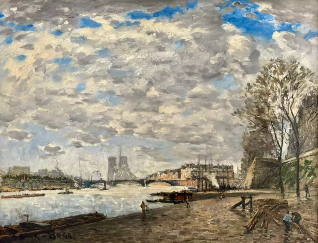 弗兰克·博格斯(Frank BOGGS,1855-1926)是一位生于美国俄亥俄州、但成年后长期定居巴黎的画家。他在巴黎国立高等美术学院师从学院派大师让·莱昂·热罗姆,但作品风格却深受荷兰海洋画家容金德的影响,偏爱雾气氤氲的晨昏与雨后塞纳河的柔光,而非灿烂的晴日。