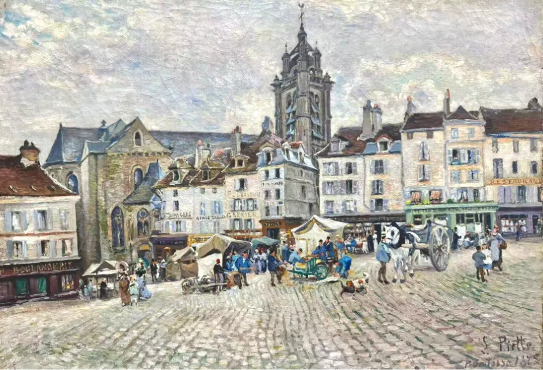 皮埃特所创作的“Pontoise”的风景,距离奥维尔小镇仅有二十分钟车程,如今是一条著名的 “印象派之路” (Route des Impressionnistes),也是画廊创始人生活和经常经过的地方,时隔百年,这里的建筑、街道、场景依旧鲜活地存在着,时刻提醒着我们无处不在的艺术的灵光,仿佛我们与印象派艺术家一起生活。
