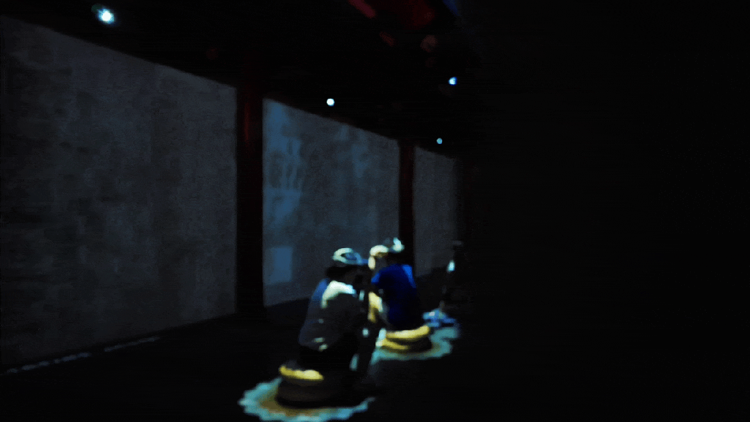 在后续的轻量化展示中,包括在上海纽约大学参加文化遗产数字遗产会议时,我们带领他们参观开化寺的方式,利用较小的现有多媒体空间,使用墙面投影。我们在这里的艺术呈现主要是VR眼镜,因为VR眼镜较好携带。