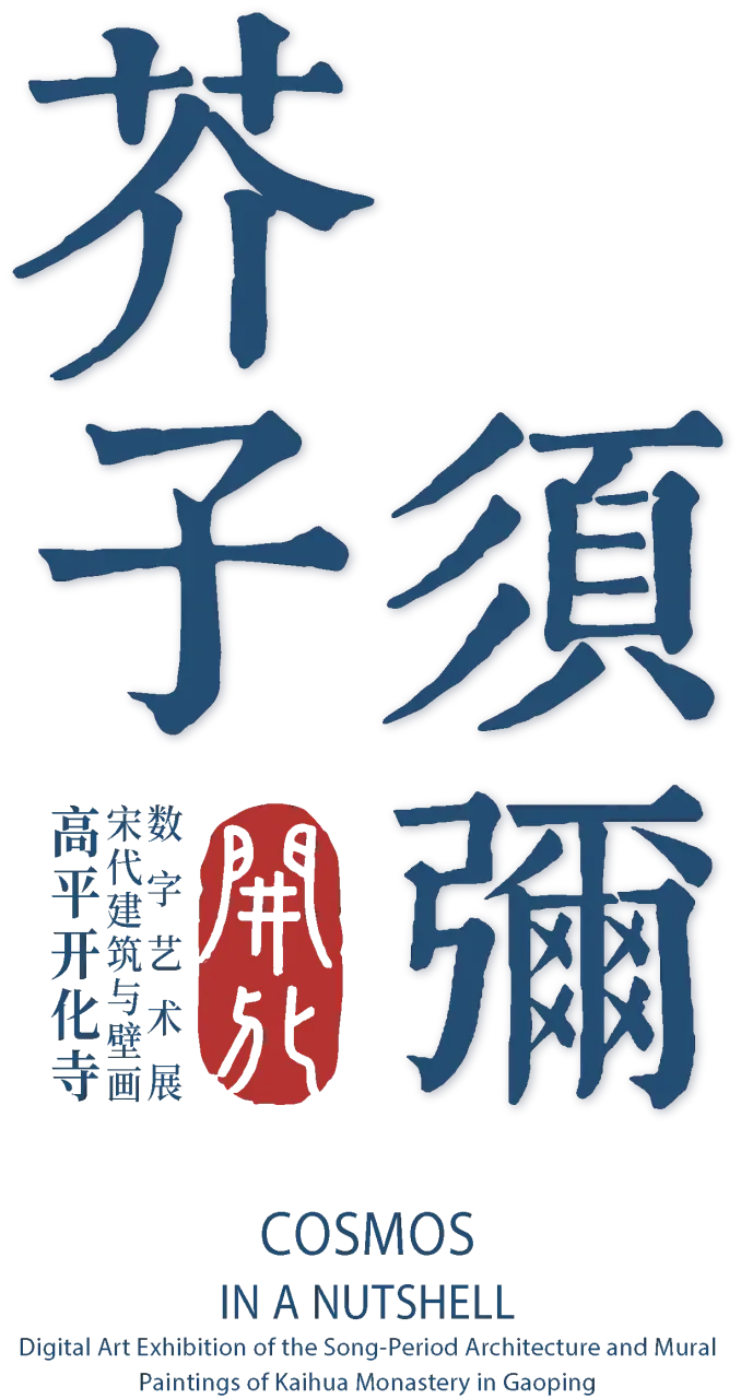我们将缩尺壁画放在更大尺度的环境下,从1:2变成了1:3,这样大家可以看到更多壁画里的情节。我们将此作为开化寺的一个历史空间、物质遗存来介绍,包括其壁画、建筑、环境以及内部彩画等。而另一个展厅与它相对,呈现的是一个与历史空间相对的想象空间。通过复原研究以及数字艺术的方式呈现出来这个想象场景,不仅是纯数字建模,也制作了小装置——通过层叠幕布,仿佛穿透了图像空间接触到佛教故事所想引导我们走到的地方,层层叠叠幕布的最后一张是卢舍那佛,位于开化寺的正殿里。如果通过右旋空间,大家看过周围的八幅画到最后一幅画,那么也是这样一幅画。因此我们希望将壁画的逻辑串联到展览空间的逻辑中。