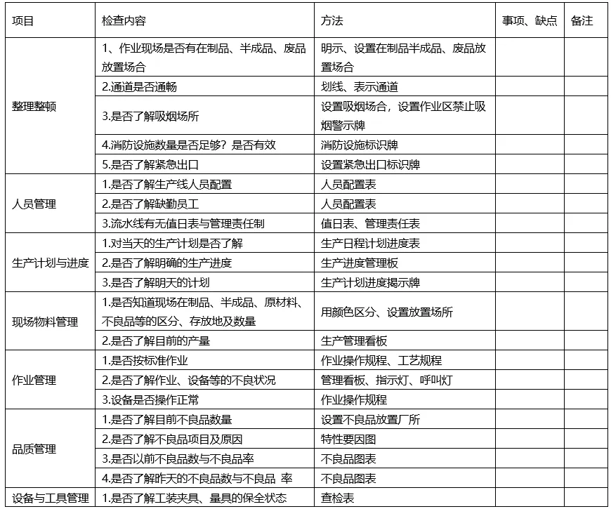 目视管理查核表