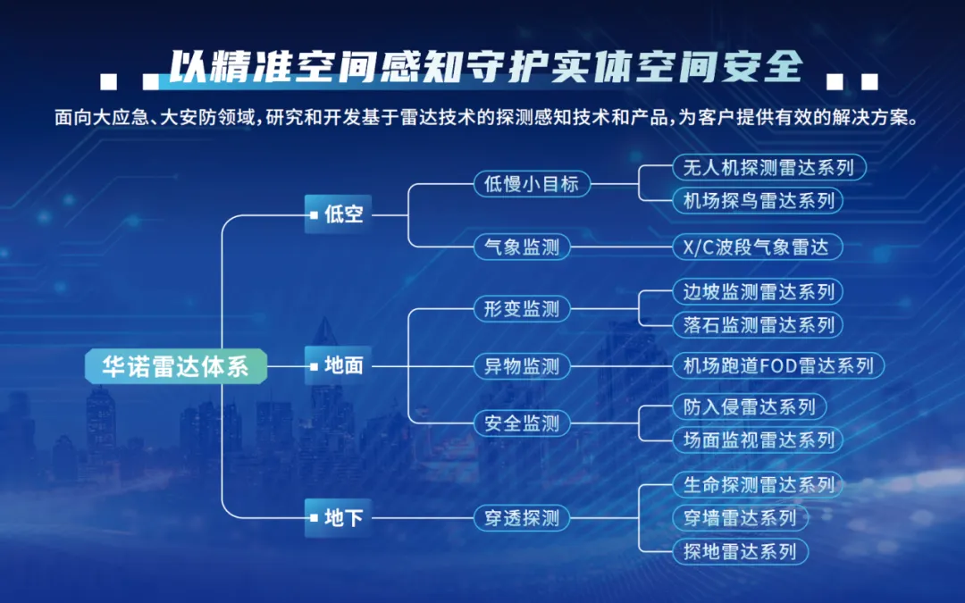 除低空与气象领域外,华诺星空地面(边坡/落石监测、机场FOD、防入侵等)、地下(生命探测、穿墙、探地雷达)全系列雷达产品也将同步展出,全方位展示华诺雷达体系的技术实力与场景覆盖能力。