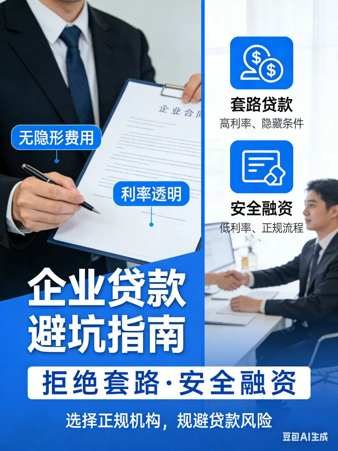 疑问1:中介说“付费就能包装资质,100%下款”,可信吗? 解答:不可信!资质包装(伪造流水、纳税记录)属于造假,会被银行识别,企业及法人会被列入黑名单,终身影响融资,还可能承担法律责任,且中介收费后大概率失联。疑问2:银行和助贷机构,该选哪个? 解答:征信良好、需求简单(小额周转),可直接对接银行,省去服务费;征信一般、需求复杂(无税无票、大额贷款),可找正规助贷机构,借助其资源提升通过率,注意选择“放款后收费”的机构。疑问3:利率越低,贷款越划算吗? 解答:不一定!需算清综合年化成本(表面利率+服务费、评估费等隐性成本),有的产品表面利率低,但隐性费用高,实际成本反而更高;优先选择综合年化最低、无隐形收费的产品。总结:企业贷款没有“一刀切”的标准,核心是“资质匹配产品、合规用款”,只要吃透自身资质,选对产品、避开套路,就能高效拿到合适的贷款,为企业发展注入资金动力。关注公众号获取更多贷款资讯