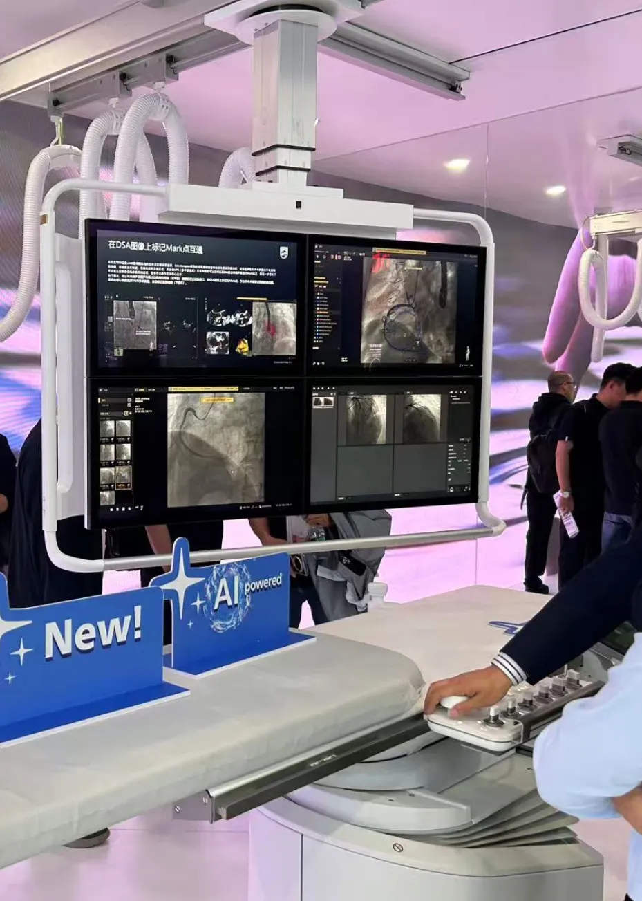 飞利浦在介入领域具有深厚积累, Azurion系列集成了人工智能(AI)技术,可提升手术导航效率和剂量管理。硬件设计注重稳定性,并适配多样化的临床习惯。飞利浦强调该系列为复合手术室提供解决方案,支持心脏、血管及肿瘤等介入应用。AI与DSA的融合是其核心优势,巩固了其在高端市场的地位。