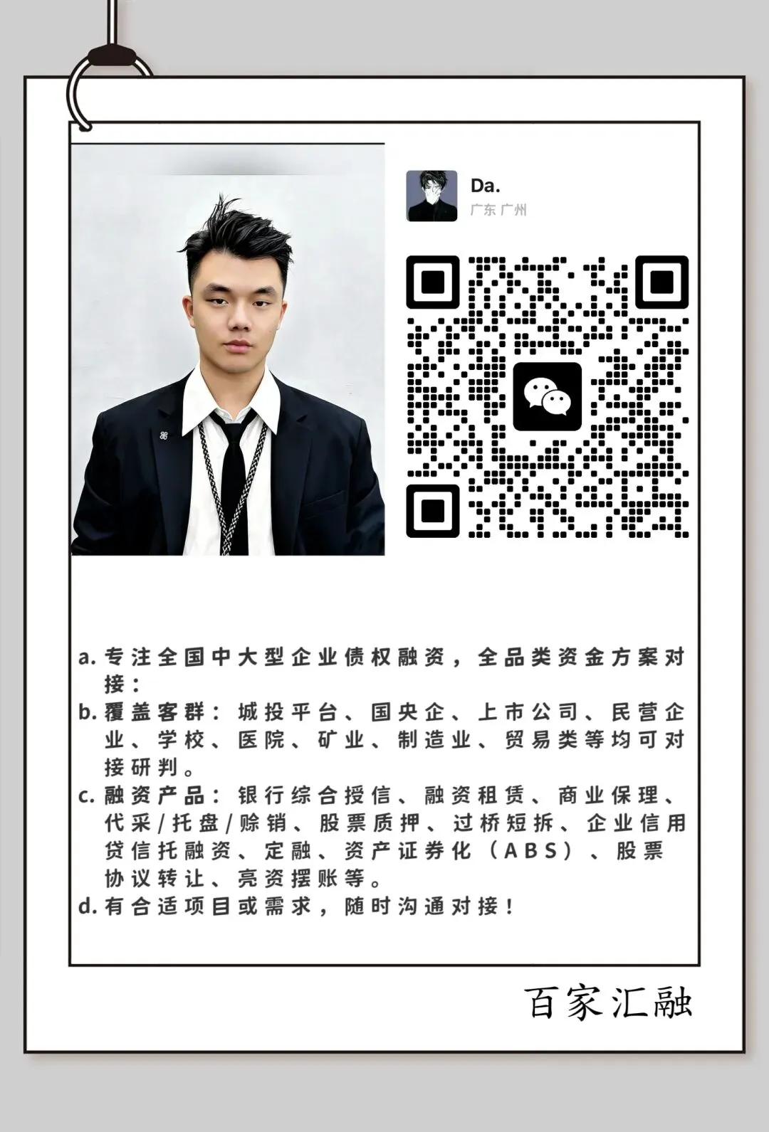如果你是中大型企业负责人、财务总监,或有融资需求的企业管理者,欢迎联系百家汇融,让专业的融资顾问为你量身定制方案,开启高效融资之旅。