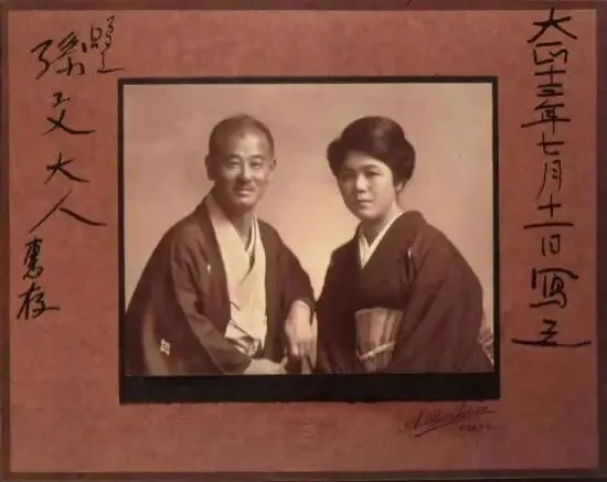 孙中山在日期间,梅屋庄吉正卧病在床,他委托萱野长知给孙中山捎去亲笔信和礼物,并附赠他和夫人德子摄于东京的合影。此为梅屋庄吉和德子夫人摄于东京的合影。(上海孙中山故居纪念馆藏)