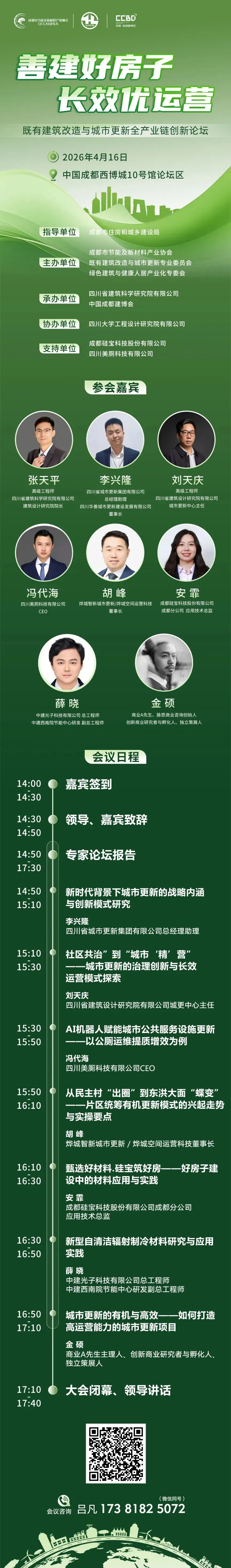 当城市发展从“增量扩张”转向“存量提质”,当“好房子”成为衡量城市更新成效的核心标尺,既有建筑改造正迎来前所未有的机遇与挑战。既有建筑改造与城市更新全产业链创新论坛——“善建好房子 长效优运营”将在成都西博城启幕。聚焦政策解读、技术路径、商业模式与长效运营,汇聚全产业链头部力量,共探城市更新从“建设思维”向“运营思维”转型的实践路径。来这里,读懂城市更新的底层逻辑,链接存量焕新的全链资源。