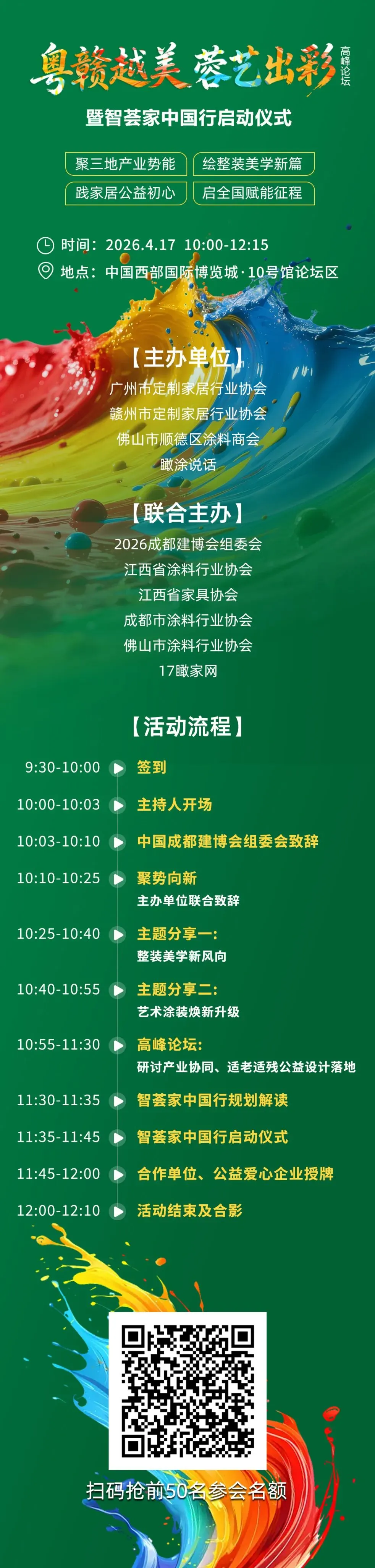 四川作为全国涂料相对集中的产业基地,不仅拥有来自国内外知名涂料企业的入驻,还随着市场经济的发展,培育出不少的地方涂料企业。“好涂料•四川造”2025川派艺术涂料创新产业发展高峰论坛旨在通过与消费者零距离交流与互动,深入了解川派艺术涂料企业(品牌)和市场发展前景。