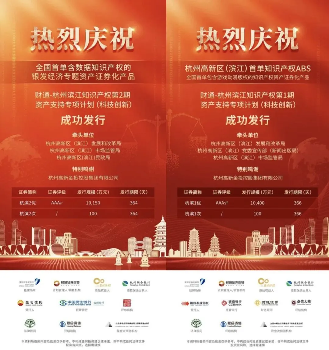 截至目前,高新区(滨江)已发行四期ABS证券化产品,成功打通了知识产权ABS全链条市场化通路。