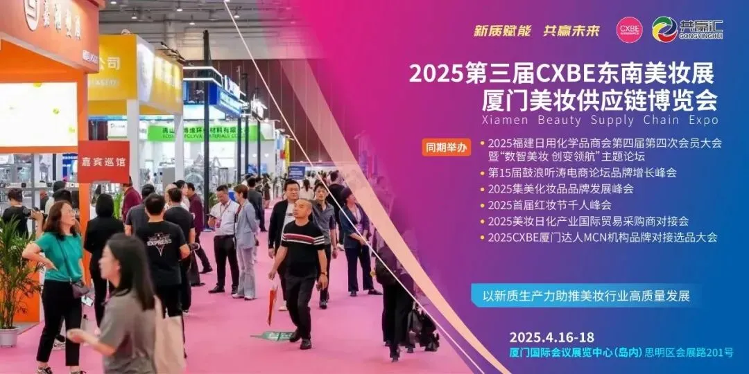 2025CXBE东南美妆供应链博览会暨日化技术个人护理展将于4月16—18日在厦门国际会议展览中心举办。展会由福建省日用化学品商会特别支持,厦门共赢汇会展有限公司主办,浙江省日用化工行业协会、江苏省日用化学品行业协会、山东省日化行业协会、广东省日化商会、上海日用化学品行业协会、北京日化协会、杭州市化妆品行业协会、汕头市化妆品行业协会、福建省特殊食品与化妆品协会、福建省连锁经营协会、美妆小镇美妆健康协会、厦门市网络零售企业协会、厦门市集美区化妆品协会、苏州市日用化学品行业协会、昆山市化妆品香料香精工业协会、济南市化妆品行业协会、厦门市电子商务协会、英德市化妆品行业协会、优妆荟美妆联盟共同联合协办。