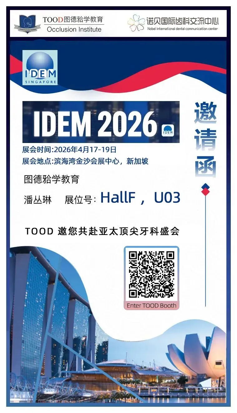 您好!2026年4月17日-19日,TOOD图德?学教育将携“精密器械+系统教育”双轮驱动解决方案,重磅亮相【IDEM 2026 年新加坡国际牙科展】HALL-F馆U03展位。
