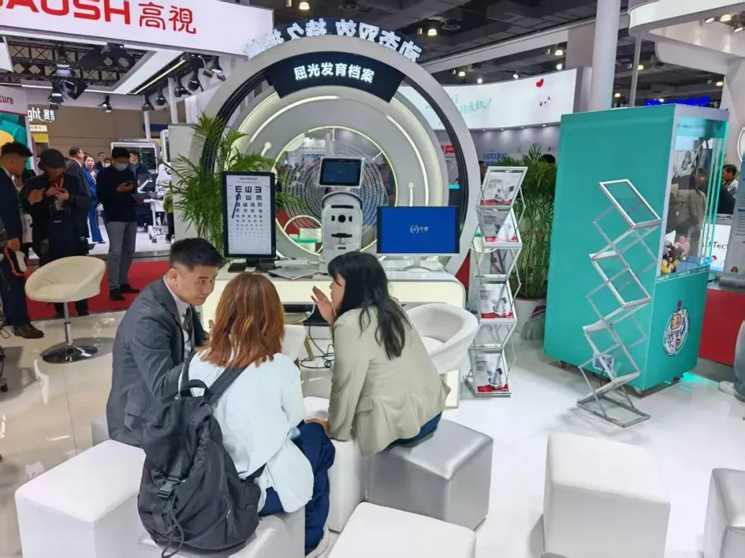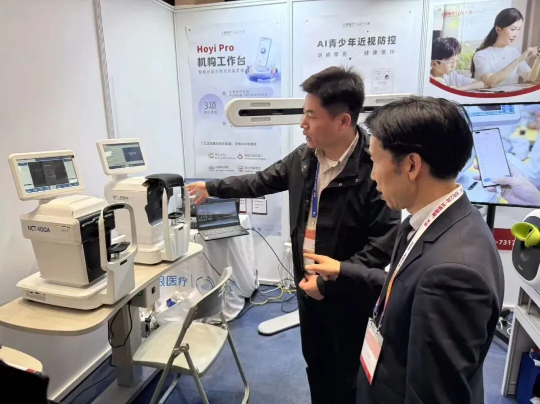在不同场景下,火眼医疗始终围绕近视管理与眼健康数字化服务能力进行展示,呈现从检查设备到数据管理、从机构端到家庭端延伸的整体解决方案。“光明之路·五官健康”大会:获表彰认可,见证公益医疗实践在“光明之路·五官健康”大会期间,复旦大学附属眼耳鼻喉科医院对参与支持五官科C909商飞前往新疆和老挝项目的相关厂家进行了表彰。作为设备支持方之一,火眼医疗积极参与该项目,以专业设备支持相关眼健康服务工作。大会现场,火眼医疗CEO杨总代表公司接受颁奖,并上台致辞。这一环节不仅体现了火眼医疗与复旦大学附属眼耳鼻喉科医院之间的合作基础,也体现了公司在眼健康公益实践与真实应用场景中的持续参与。对火眼医疗而言,这不仅是一份认可,也是一份责任。未来,公司也将继续以专业设备与数字化能力,为更多实际场景中的眼健康服务提供支持。在三场展会现场,火眼医疗重点展示了围绕近视管理与眼健康服务所构建的一体化能力体系。以FAL系列为代表的眼生物测量设备,可实现眼轴等关键指标的精准采集,为近视管理提供可靠的数据基础。硬件设备不仅是检查工具,更是后续管理得以展开的起点。火眼青少年近视管理软件平台可承接检查后的数据留存、趋势分析与复查管理,帮助门店和机构将一次检查延伸为持续服务流程,提升管理效率与客户连接能力。Hoyi护眼大模型通过AI解读、报告转译与日常陪伴,帮助家长更好理解检查结果与管理建议,降低专业沟通门槛,让眼健康服务从机构端进一步延伸到家庭端。通过硬件、平台与AI应用的协同,火眼医疗希望推动眼健康服务从“单次检测”走向“持续管理”,让数据真正发挥长期价值。在不同展会的现场交流中,火眼医疗解决方案在多个场景中获得了广泛关注。- 在校筛场景中,高效检测与数据沉淀能力,有助于提升筛查效率和后续管理基础;