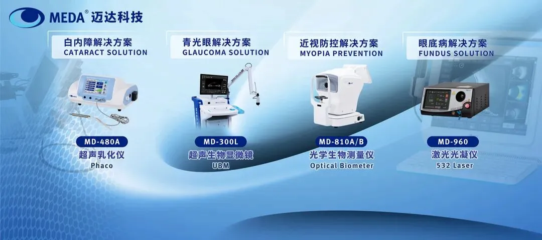 迈达眼科A/B型超声诊断仪、超声生物显微镜等眼科超声诊断系列产品搭载先进的超声成像技术,可提供细节丰富的高清B超、UBM影像,准确的眼生物测量与人工晶体计算结果,为白内障、青光眼、屈光手术等临床应用场景提供精准、可靠的诊断依据,搭配超声乳化仪、激光治疗仪、激光光凝仪等治疗设备,全面赋能迈达白内障、青光眼、眼底病和近视防控解决方案,大幅提升临床安全性、可靠性与灵活性。