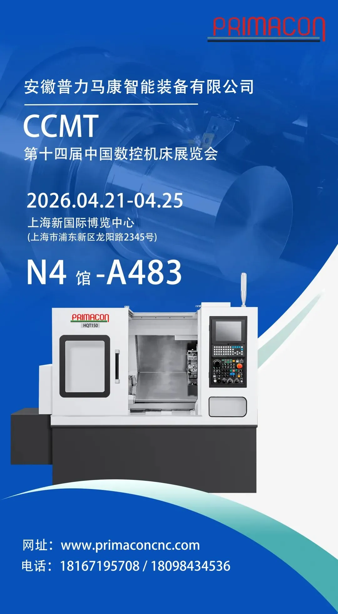 第十四届中国数控机床展览会(CCMT2026)将于 2026 年 4 月 21 日至 25 日在上海新国际博览中心举办,聚焦 “数字・互联・智造”,展出面积达 20.2 万平方米,汇聚来自 27 个国家和地区的 2000 余家参展企业,是亚洲规模最大、国内最具影响力的机床工具专业展会。汇聚国内外行业巨头与优质企业,既是展现全球机床工具技术趋势的行业风向标,也是服务汽车、航空航天、新能源等领域采购选型、技术交流与产业协同的核心平台。安徽普力马康将携HQT150数控车床系列机型亮相登场,欢迎各位莅临指导!
