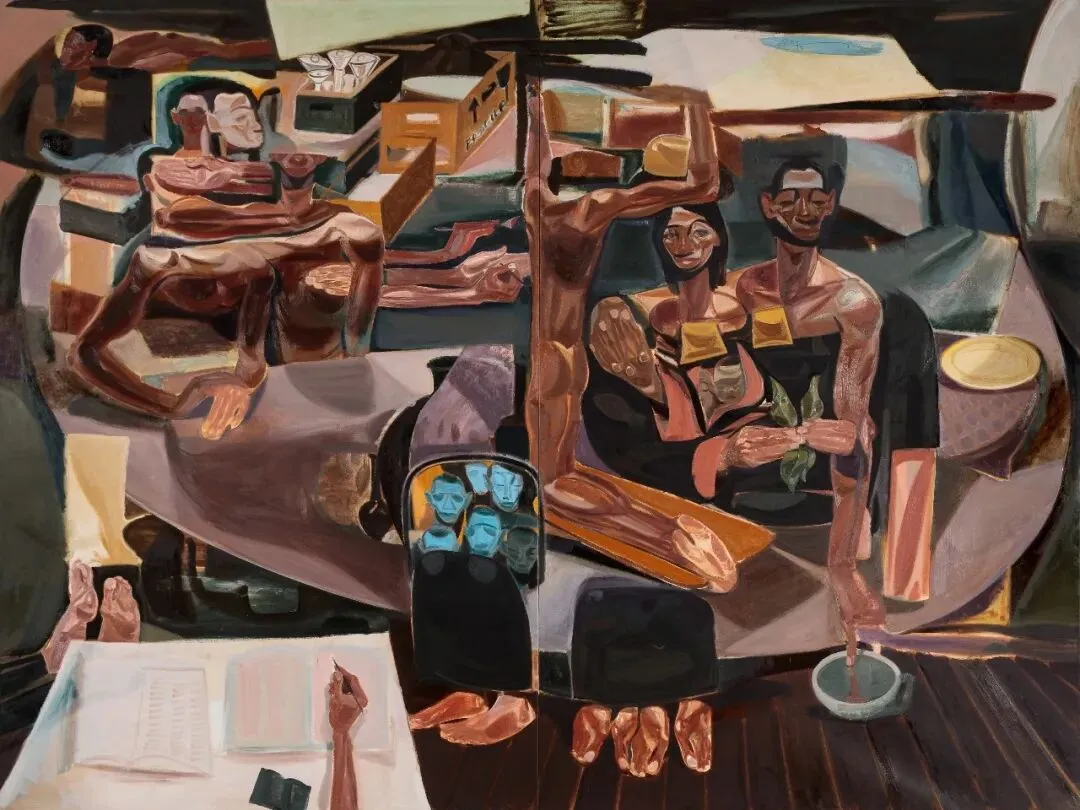 特斯法耶·乌尔盖萨,1983年出生于埃塞俄比亚首都亚的斯亚贝巴,现往返于德国尼尔廷根与亚的斯亚贝巴之间生活与工作。他曾在埃塞俄比亚学习,后毕业于德国斯图加特国立美术学院。这些经历使乌尔盖萨得以将埃塞俄比亚文化符号与其对传统具象绘画的深厚迷恋相结合,创造出独特且打动人心的艺术语言。他作品中的人物形象身体扭曲,体现出隐藏在家庭环境中扭曲的心理张力。乌尔盖萨的创作主题呼应着种族与身份政治的互相交织。
