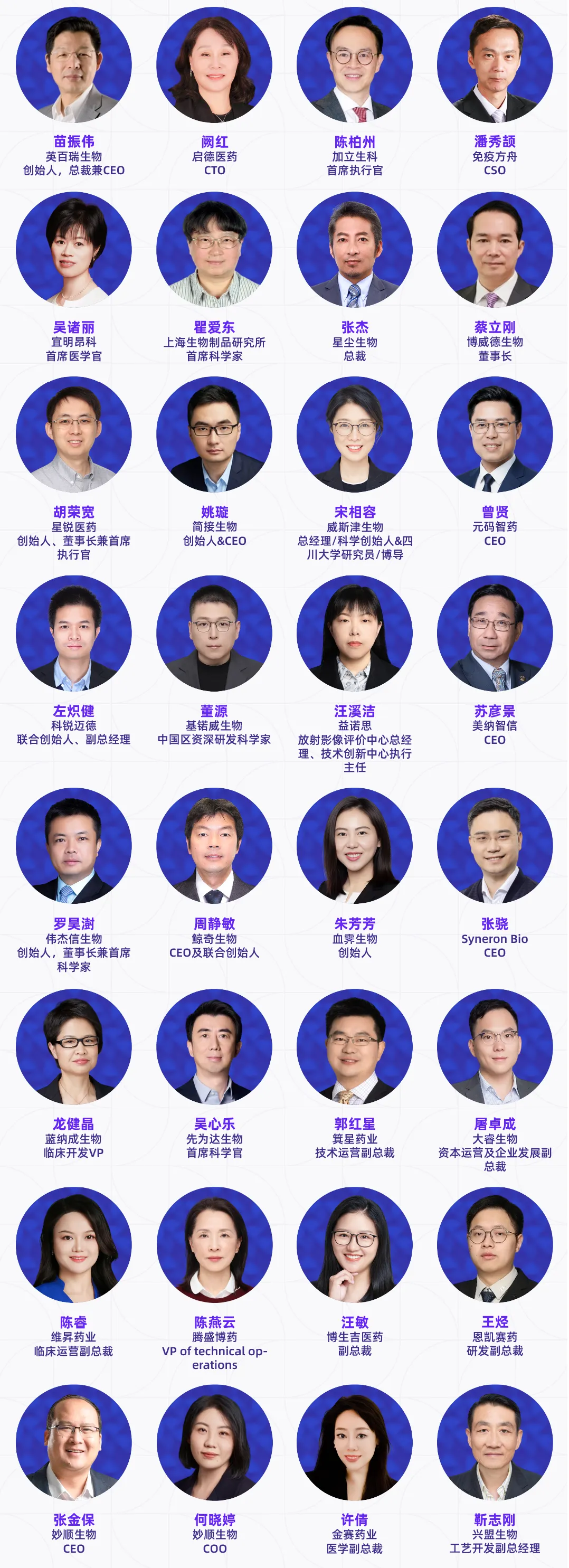 本届大会已确认300+讲者加入,覆盖跨国药企、国内外药企、Biotech高管、创始人、全球开发负责人及核心技术负责人、头部CRO/CDMO管理层及技术专家、科研院所研究学者、临床研究负责人以及投资决策人等产业实践者。