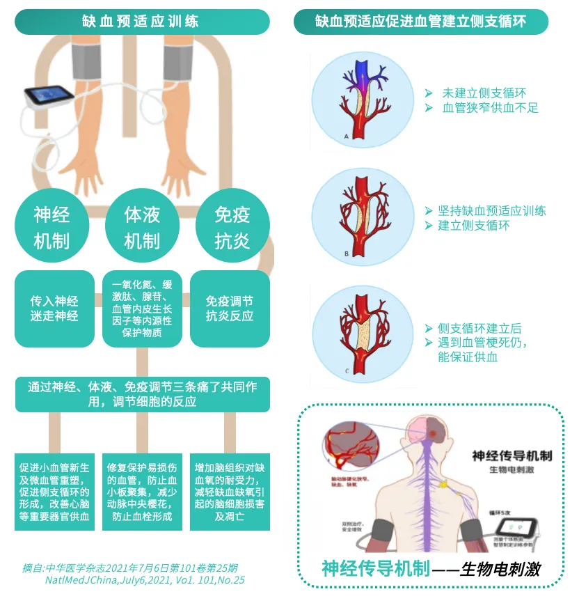 采用 “缺血预适应” 核心技术,通过人为制造肢体短暂缺血,激发机体释放内源性保护物质(如腺苷、一氧化氮),增强心脏、大脑等器官对后续严重缺血的耐受力。全程无创物理治疗,无需药物辅助,安全性经大量临床验证,用户接受度高。