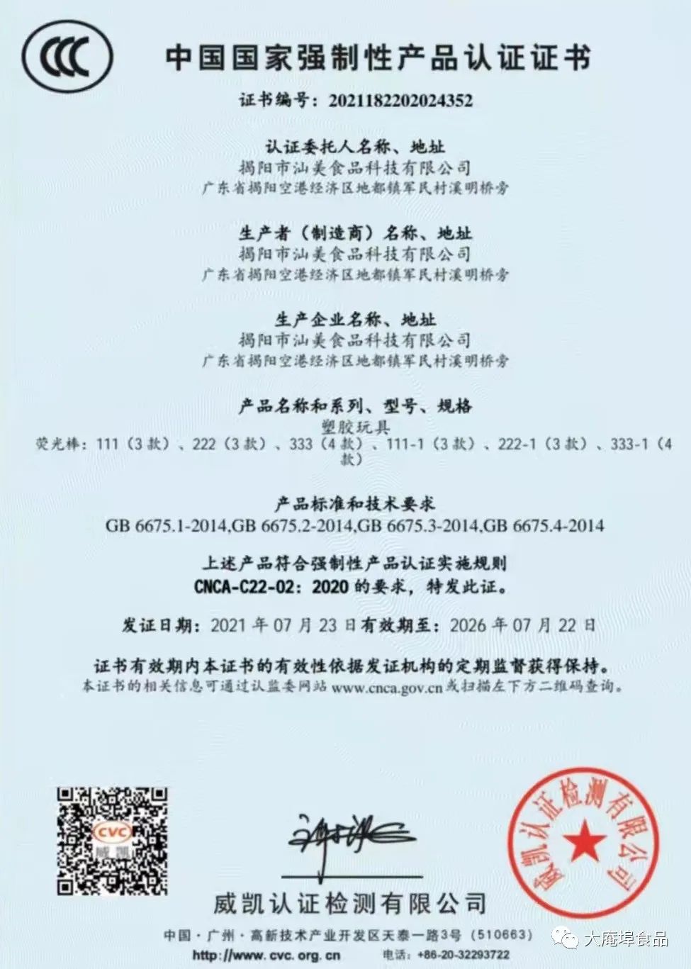 揭阳市汕美食品科技有限公司位于揭阳市揭东县地都镇军民工业区,公司是销售食品原材料与专业荧光棒玩具厂家,获得国家3c认证标准,公司正以科学的管理、执着的敬业精神、团队精神和奉献精神不懈的努力,竭诚欢迎国内外客商光临惠顾,前来咨询参观洽谈!