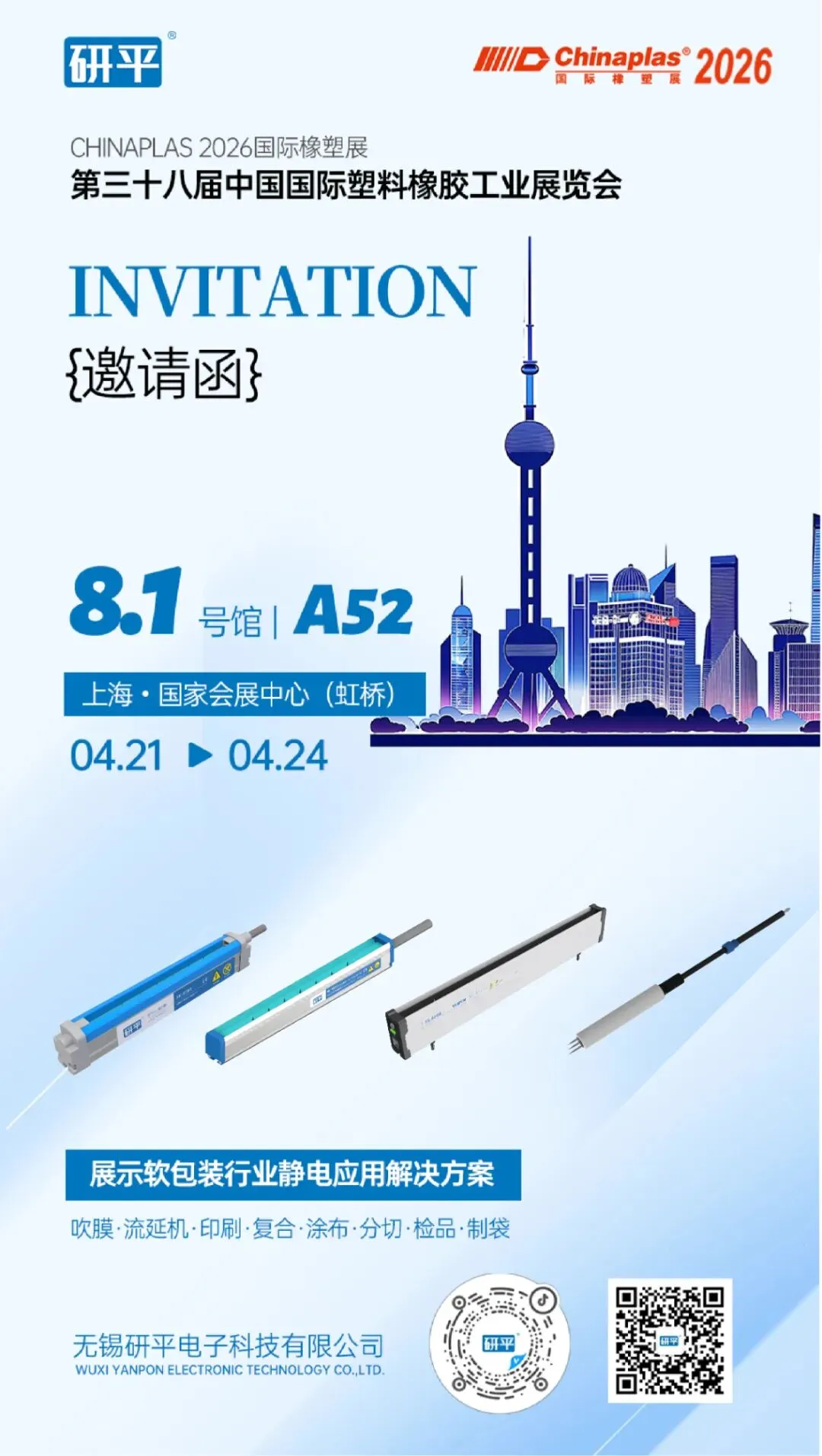 研平静电诚邀您莅临8.1A52(8.1馆)展位,解锁更多适配软包装行业的消静电产品 主打定制化服务,根据不同设备特性和需求,一对一定制软包装行业静电应用解决方案