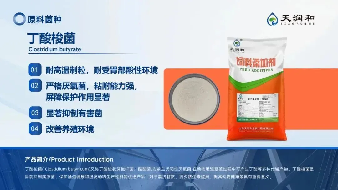 高活性菌株,耐胃酸胆盐,直达肠道定植。强效分泌丁酸,修复肠道黏膜屏障,减少炎症反应。显著提升饲料转化率,是绿色无抗养殖的核心选择。