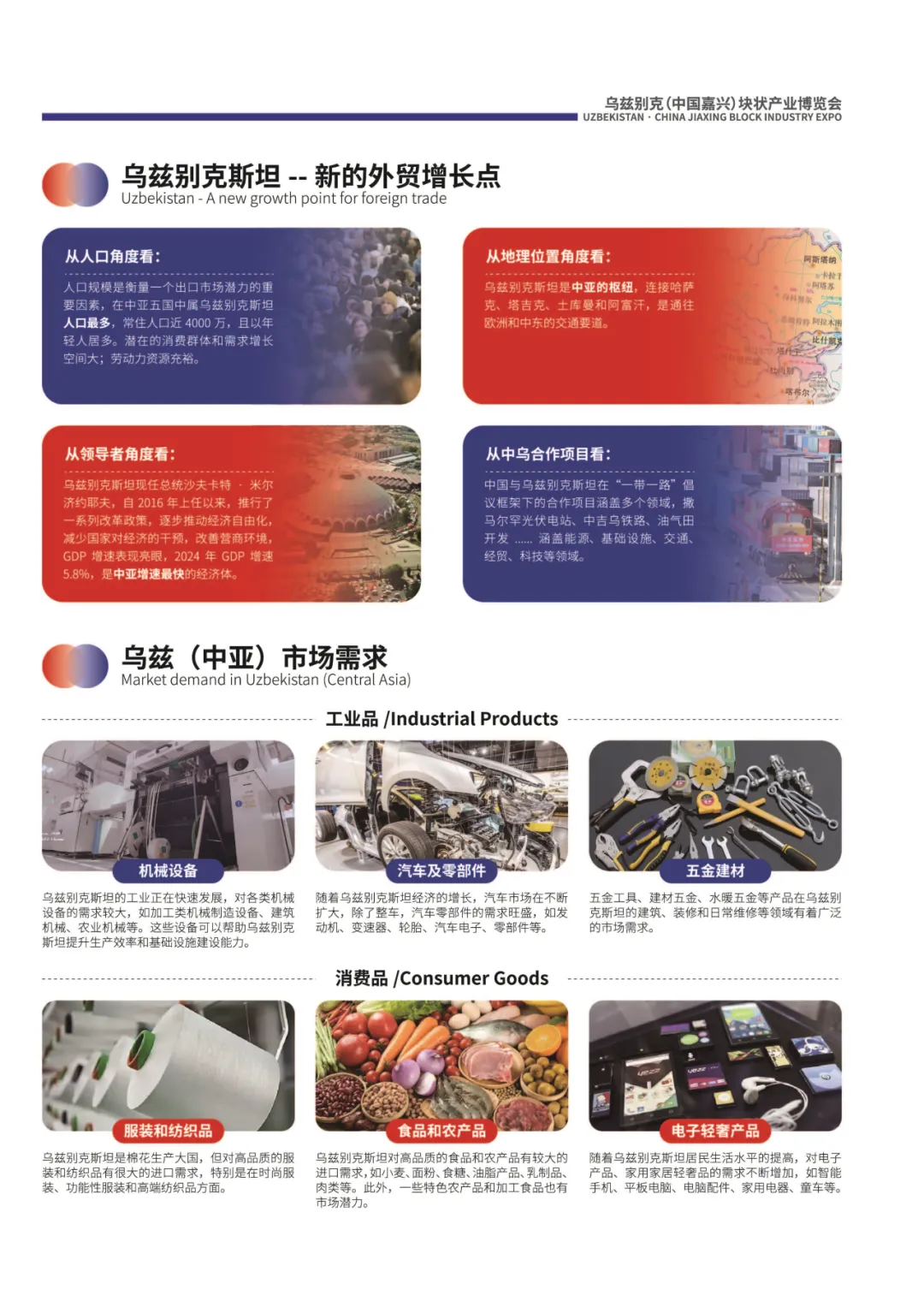 乌兹别克斯坦作为嘉兴市重点支持、中亚地区唯一自办展落地国家,正成为嘉兴企业拓订单、建渠道、布局海外仓的黄金市场!