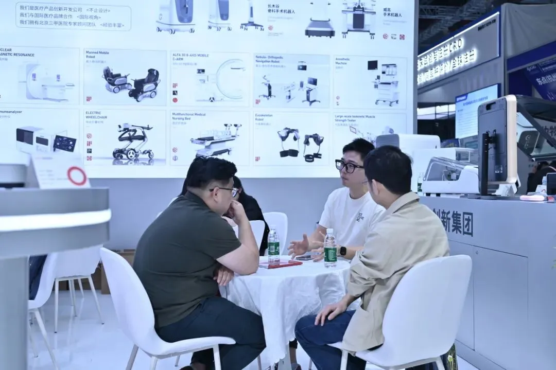 智加设计在本次展会上展示了腹腔镜手术机器人、天玑2.0手术机器人、核磁共振、血液分析仪、口扫设备、便携彩超等多款医疗产品。每一款展品都凝聚着智加设计对医疗用户需求的深刻洞察,从操作便捷性到人机交互体验,凭借精心打造的展位、精准还原的样机以及专业创新的设计成果,在众多参展企业中脱颖而出,成功吸引了大量国内外医疗客户的关注,纷纷驻足观看。