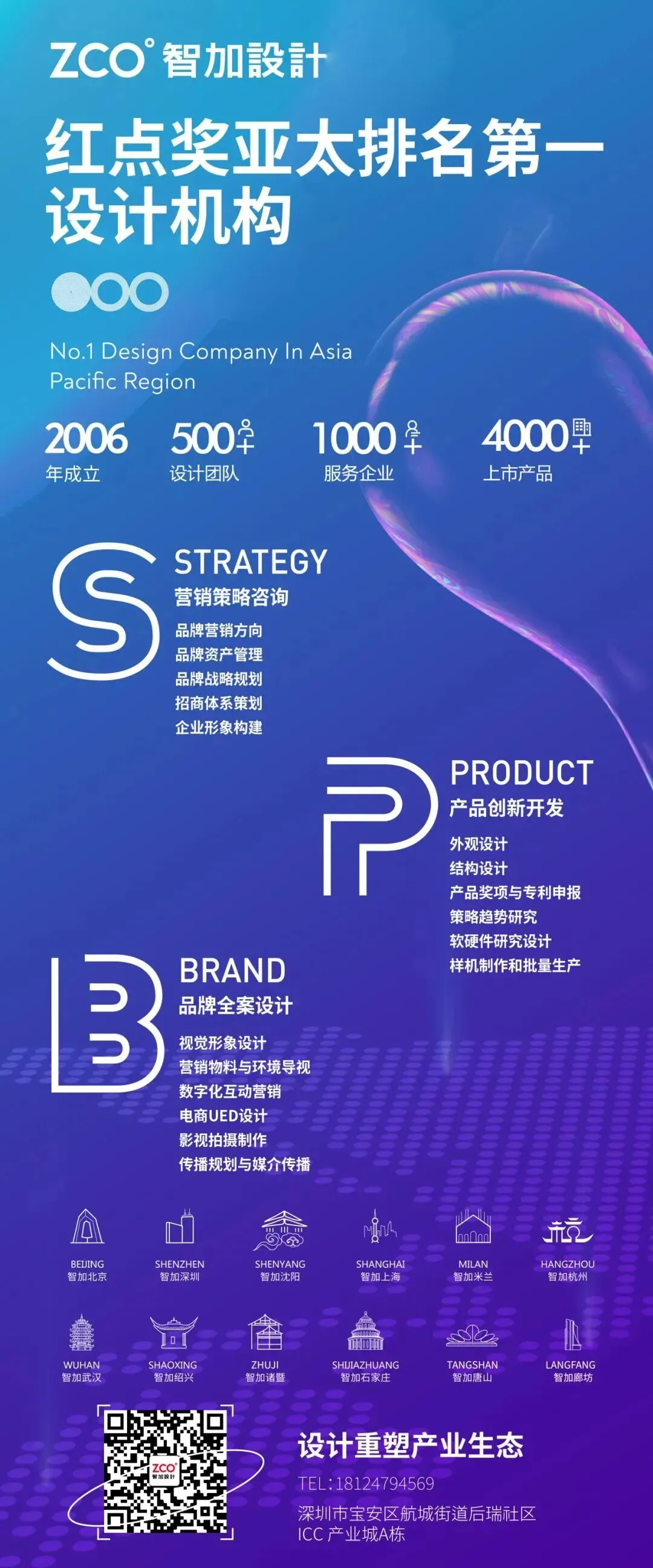 智加设计创立于2006年,现已布局北京、深圳、杭州、武汉、沈阳、米兰等13大核心城市,多年间荣获德国红点奖、IF奖、美国IDEA、日本G-MARK等国内300多项设计大奖。其中2021-2025年连续5年红点奖亚太排名第一设计机构;2021年获评“中国十佳设计机构”;2021年、2023年获德国红点至尊金奖3项(1%获奖率);2022年被评为“中国工业设计协会医疗健康领域创新设计研究院”,2025年复评成功;2016年智加设计熊伟获评“中国设计业十大杰出青年”;2024年智加设计赵东阁获评“中国十佳设计师”;2025年与国家工业设计研究院(生态设计领域)共建国际医疗设计研究中心。为GE医疗、威高医疗、迈胜医疗、万东医疗、乐普医疗、清华大学、协和医院、安图生物等1000余家国内外一线医疗品牌与政府科研机构提供创新服务,设计超2000个医疗设备案例。
