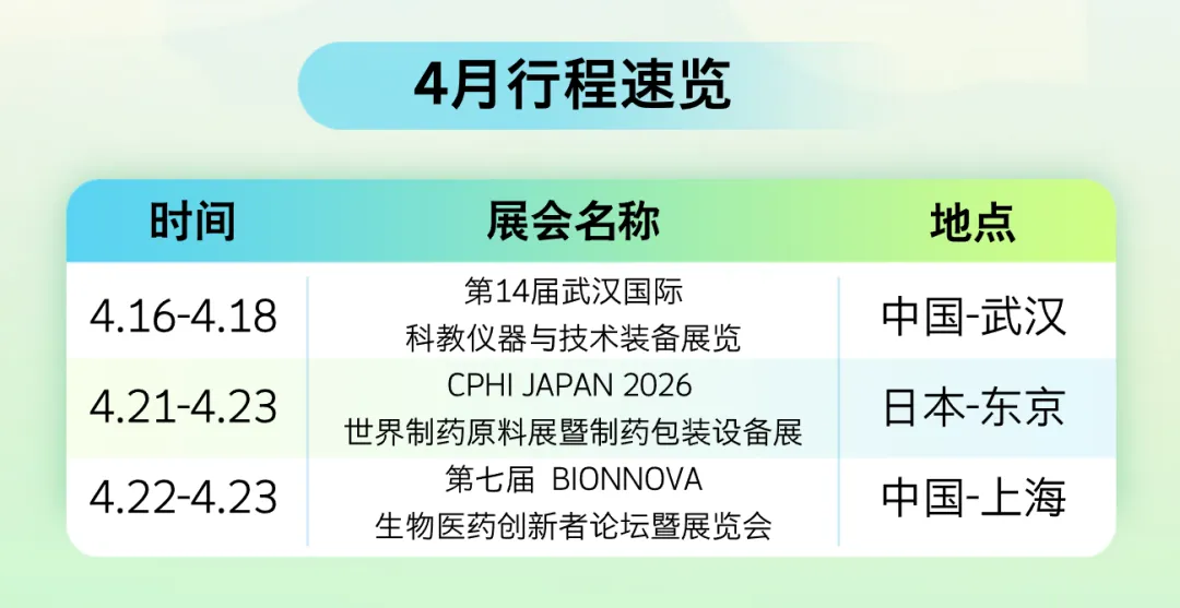 全球医药创新深度融合,产业协同迈入新阶段。纳微科技依托“色谱全生态平台”布局,深耕全球化市场,将于4月亮相国内外多场行业高端展会与论坛,以全域参展布局彰显全球化服务能力。