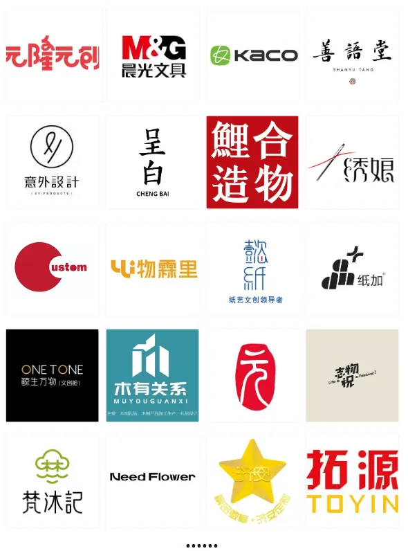 元隆元创、晨光、KACO、善语堂、纸加、贵州绣娘、懿纸文创、志物祝、意外设计、派克、泉州美合、梵沐记、木有关系、杭州霖澜、景之蓝、尚尚大吉、东莞拓源、安徽植趣、鲁盛香业、二轻大师、小物、广州千德、鲸生万物、惠州博雅、深圳祥钰、深圳元景、台州森活......