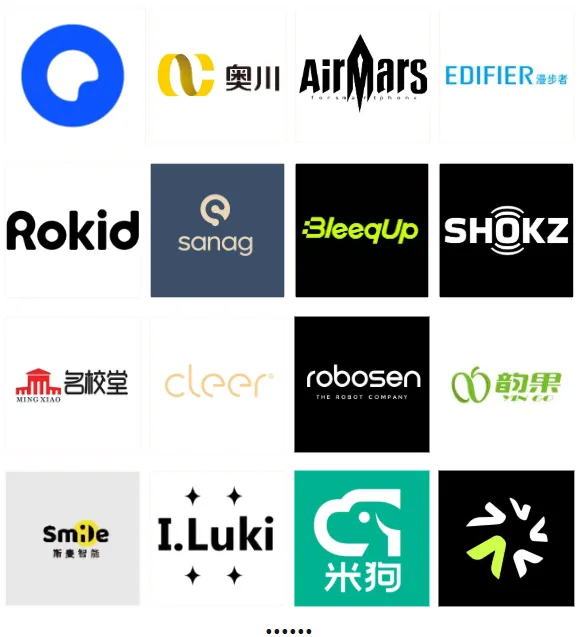 夸克、奥川、Airmars、BleeqUp超影擎、乐奇、智云译、韵果、博乐、名校堂、Cleer、韶音、漫步者、sanag、乐森、鸿灏、超维、Hohem、米狗、Musspark、雷鸟、Rokid、斯麦......