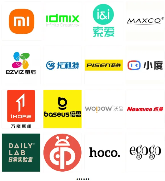 小米、品胜、美能格、大麦、沃品、纽曼、萤石、浩酷、尤利特、索爱、万魔、花卷、克拉美、镜宝明、科立博、深圳乐充、时光秀、康旅电器、意优点、广飞数码、印小签、源广浩、宜大家、极印、兰士顿、basa、......
