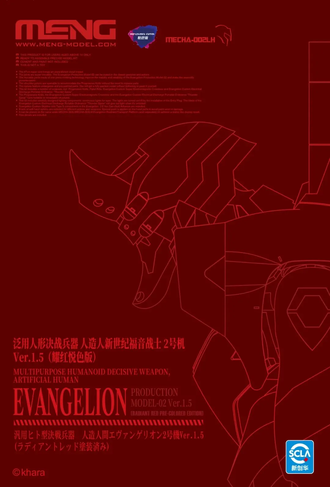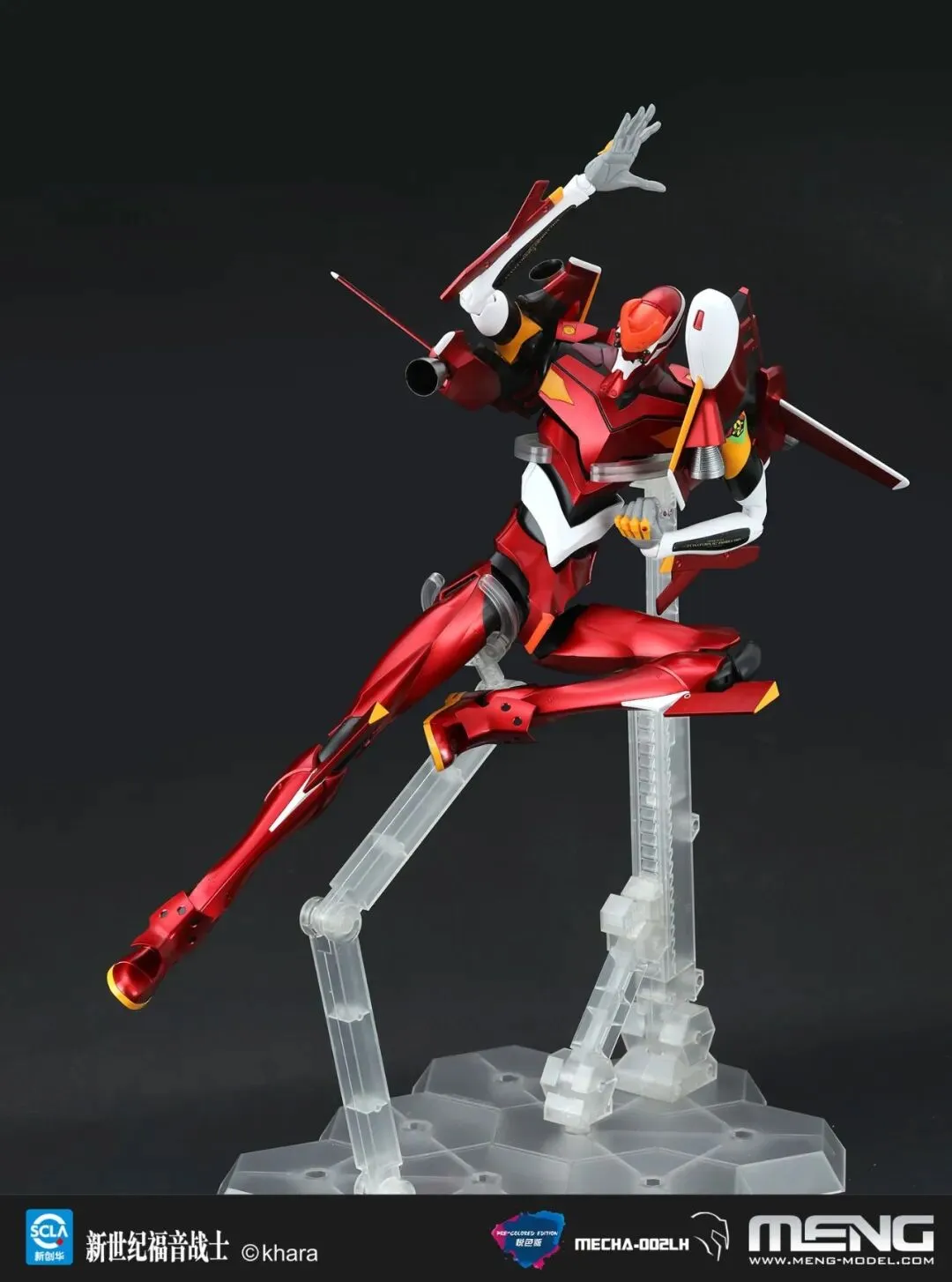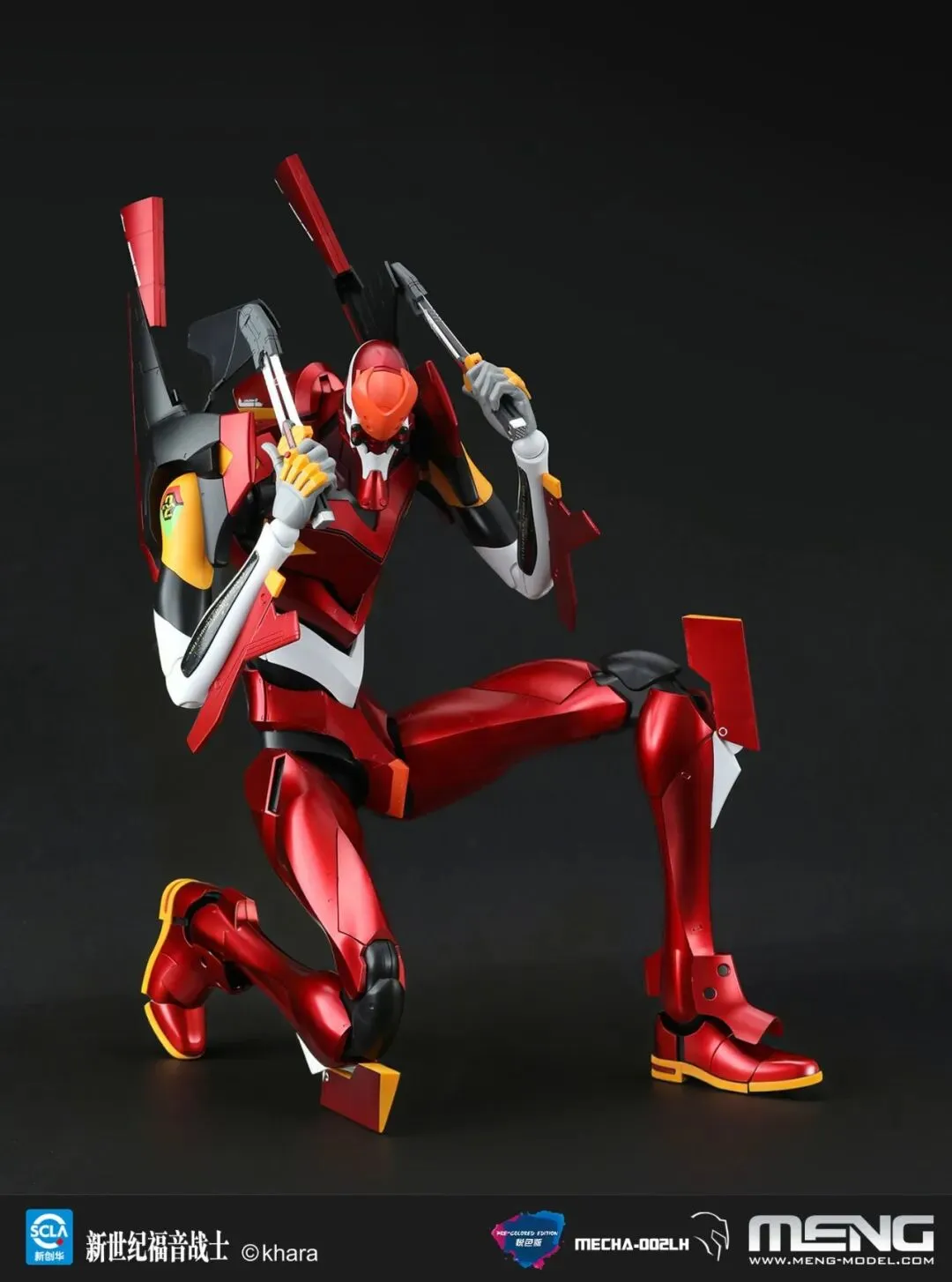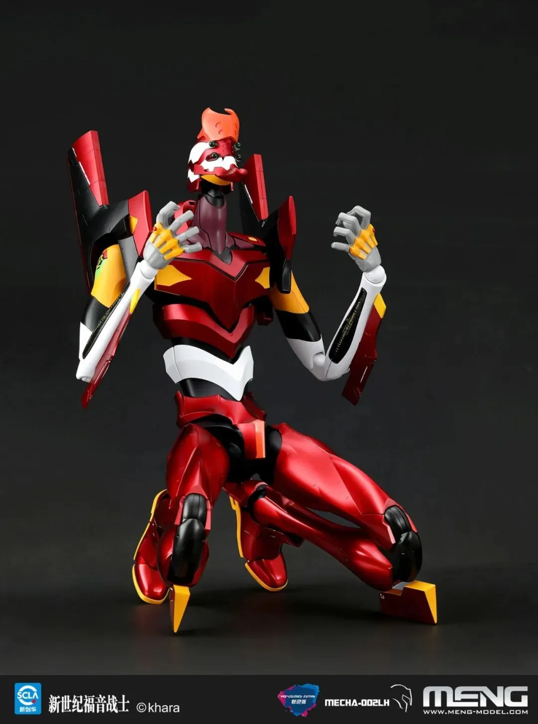 MENG推出的最新产品MECHA-002LH 泛用人形决战兵器 人造人新世纪福音战士2号机Ver.1.5(耀红悦色版)完成后全高47厘米,采用隐藏水口设计,精密多层喷涂工艺呈现耀红色彩,并附带灯光组件和高精度水贴纸。下面就让我们来看看该款套件的具体细节吧。