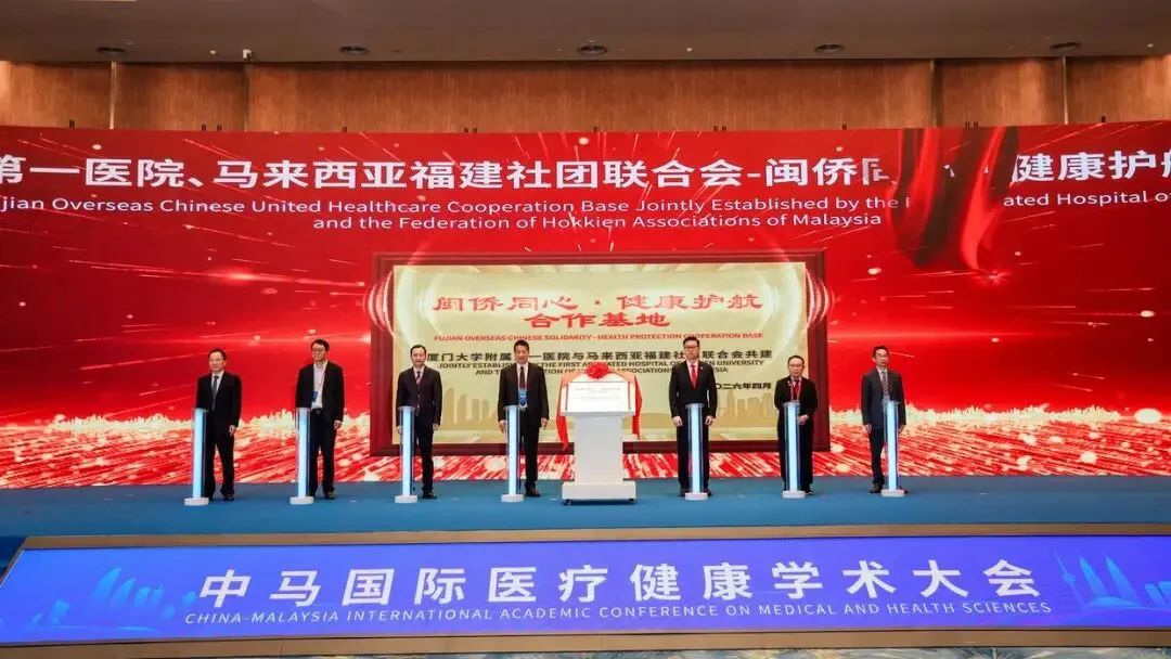 在本次大会上,厦门大学附属第一医院(以下简称:厦大附一)与厦门大学马来西亚分校、马来西亚中医总会签署合作协议。厦大附一与厦门大学马来西亚分校共建的医药教育与临床合作基地、与马来西亚福建社团联合会共建的闽侨同心健康护航合作基地、与马来西亚同善医院共建的中马友好合作医院正式揭牌。