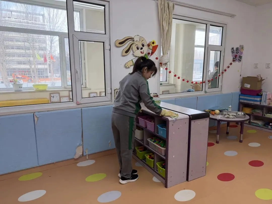 幼儿园每日对园区、教室、玩具、餐具等进行全面规范消杀,重点清洁高频接触区域,做好消毒记录,筑牢校园安全防线;同时请家长配合,定期清洁宝贝的衣物、玩具,保持居家环境整洁,共同守护宝贝健康。