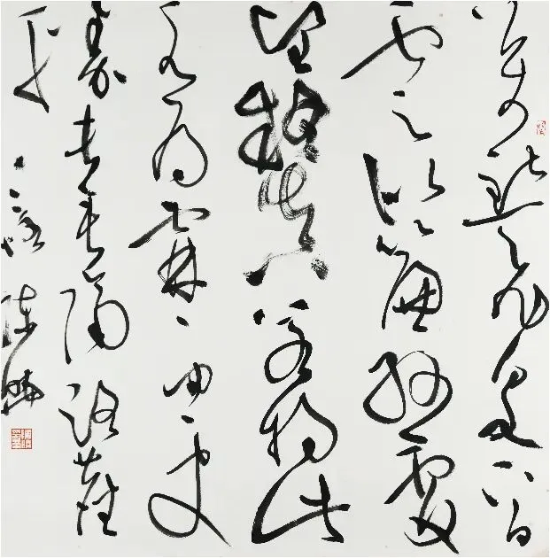 草书《声杏花双鸠图》