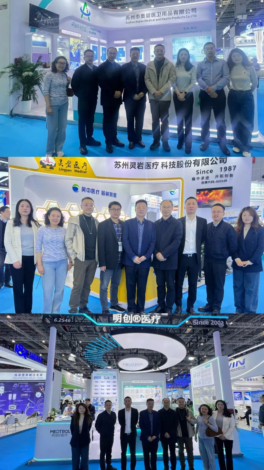 在展位现场,协会与各企业负责人、技术骨干深入交流,详细了解了新品发布、技术亮点及市场反馈。荣誉会长王金海表示:CMEF是展示企业实力、对接全球资源的重要窗口。看到会员单位携创新产品亮相,展现了吴中医疗器械产业的蓬勃活力,协会将全力做好服务支撑,助力企业拓展商机。